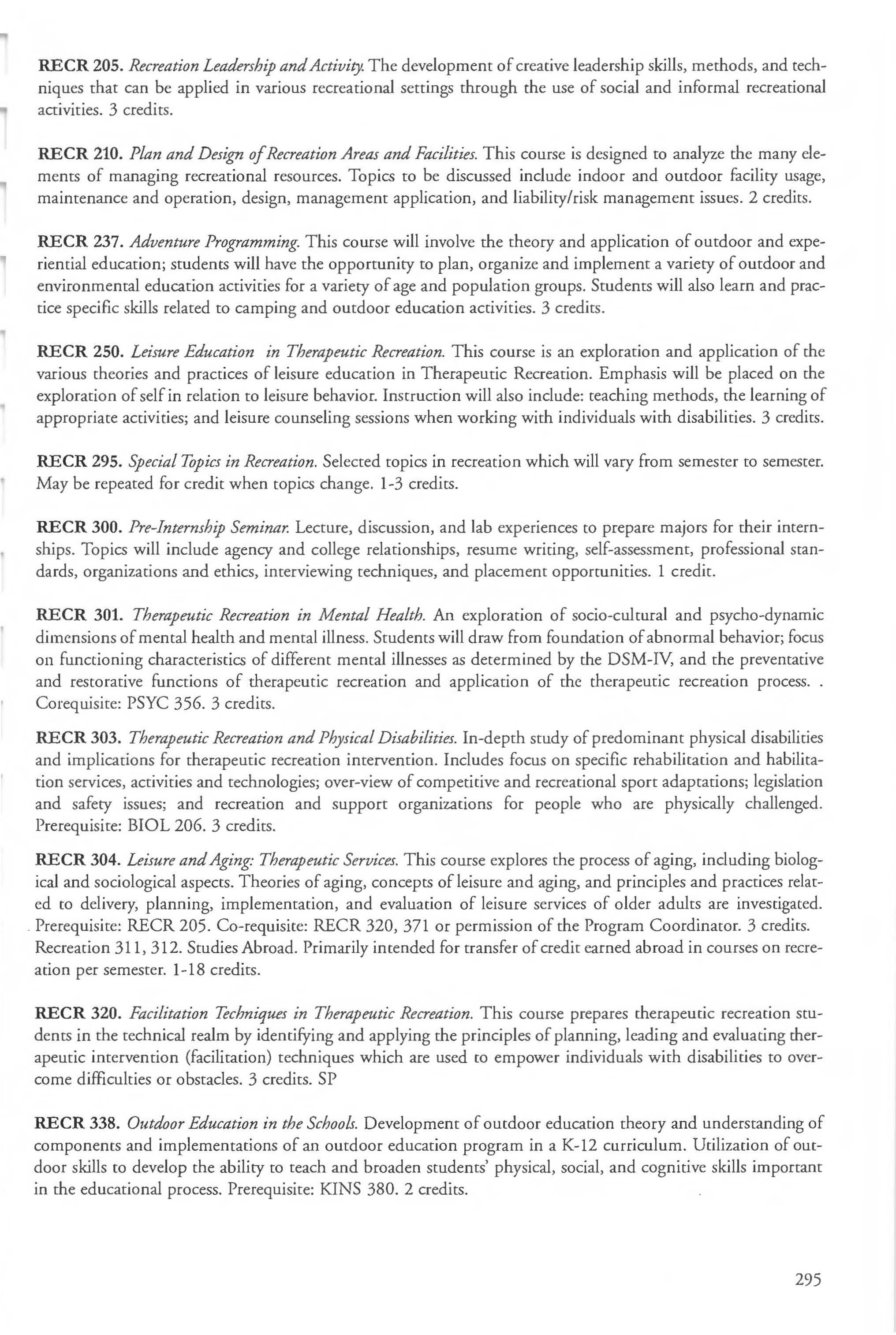 the leisure industry, from the philosophical basis of social responsibility for the public good Senior internship and credentialing procedures will be addressed. Prerequisites: RECR 392 or permission of Instructor. 3 credits.