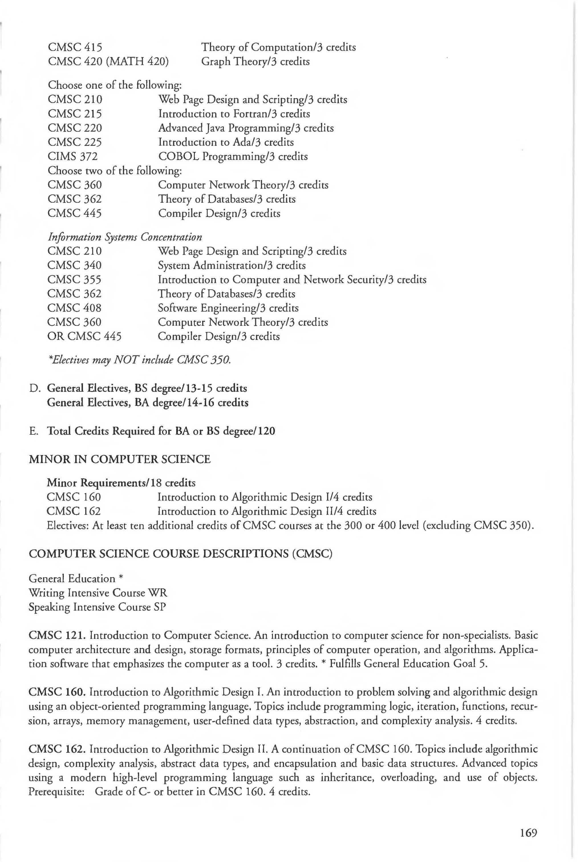 Admission into the Computer Science Courses 169 Student Teaching Program · 249 Computer Science Major Anthropology Courses 206 BA, BS Degree 168 Anthropology Major, Minor in Computer Science . . . ............ 169 BA, BS Degree 204 Cooperative Programs ... ... . ...... ... .. 78, 92 Anthropology Minor ...... . .. .. .. .. ...... 205 Correspondence Courses 16
