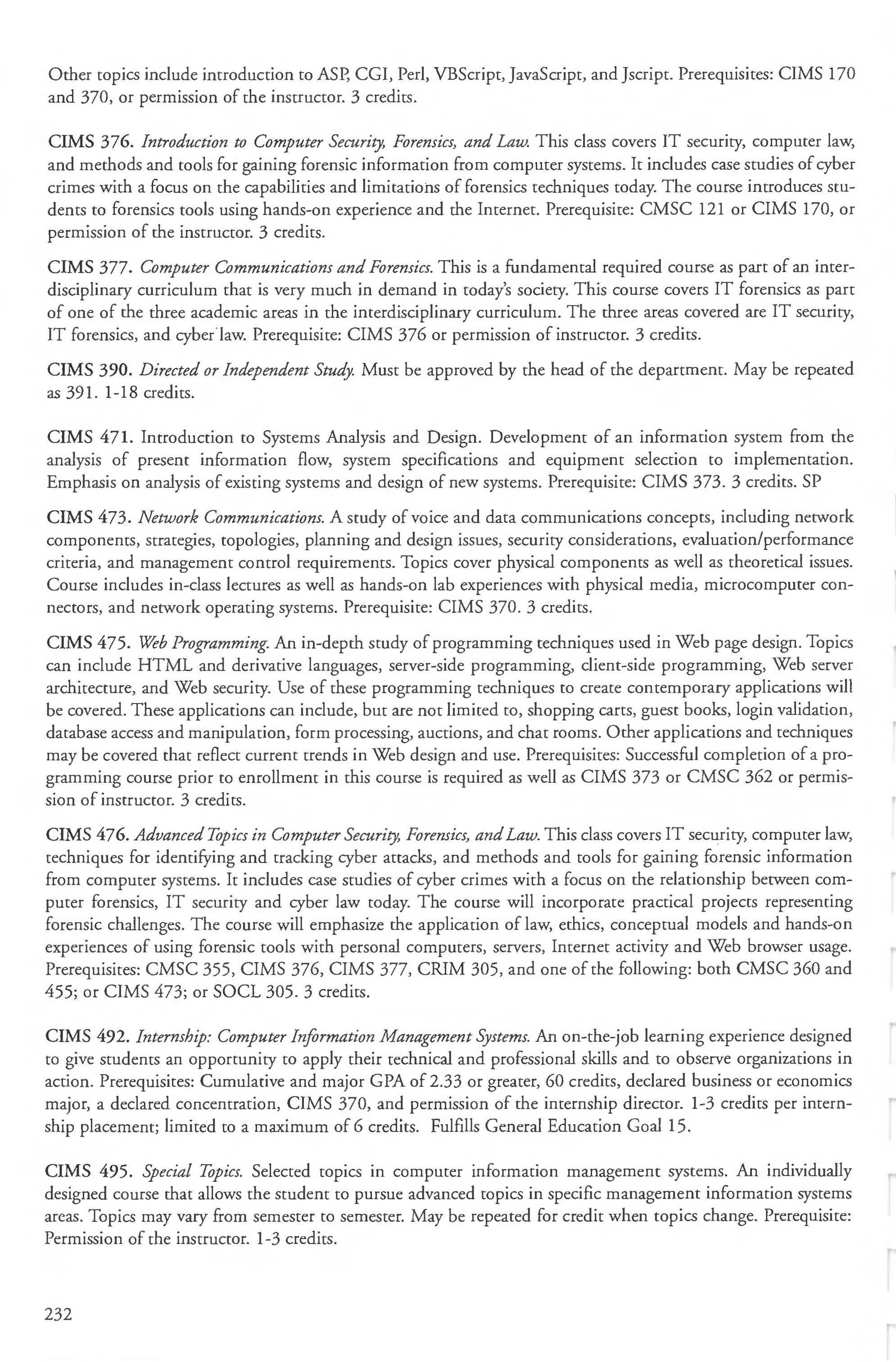 Admission into the Computer Security, Teacher Preparation .... . . . ............ 248 Forensics and Law Minor . . . .. . ... . . . ... 229