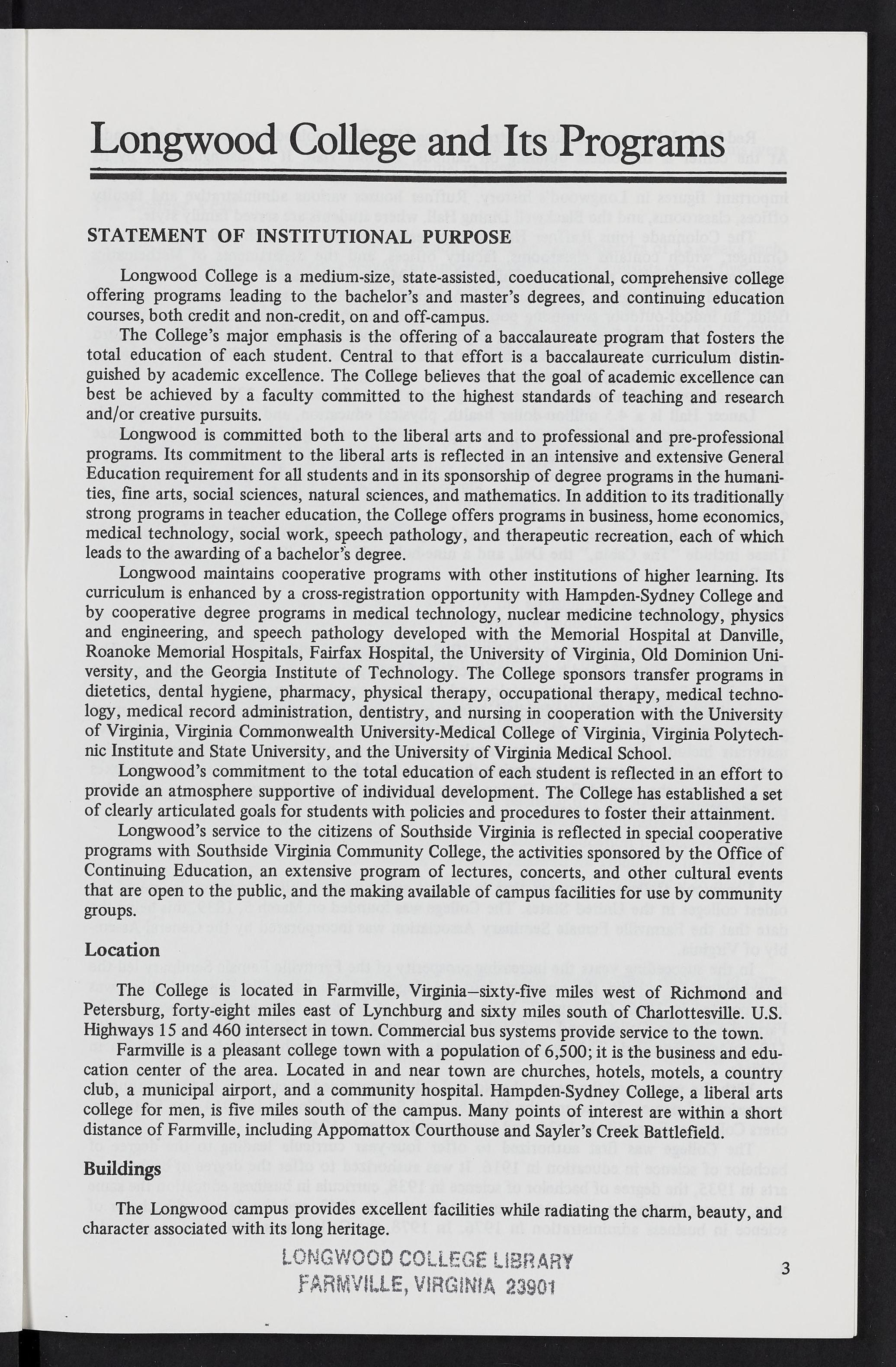 Longwood College Catalog 1986-1987