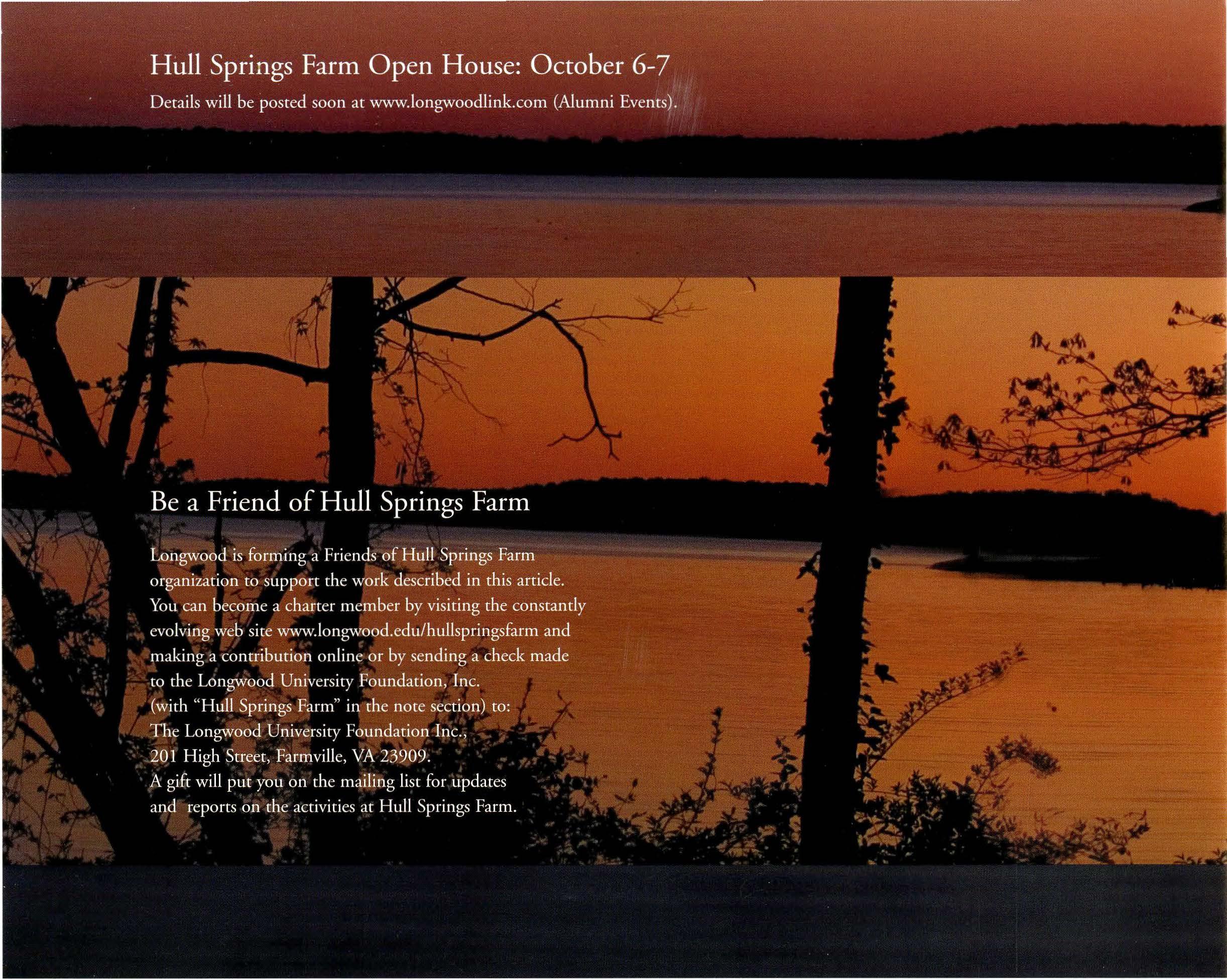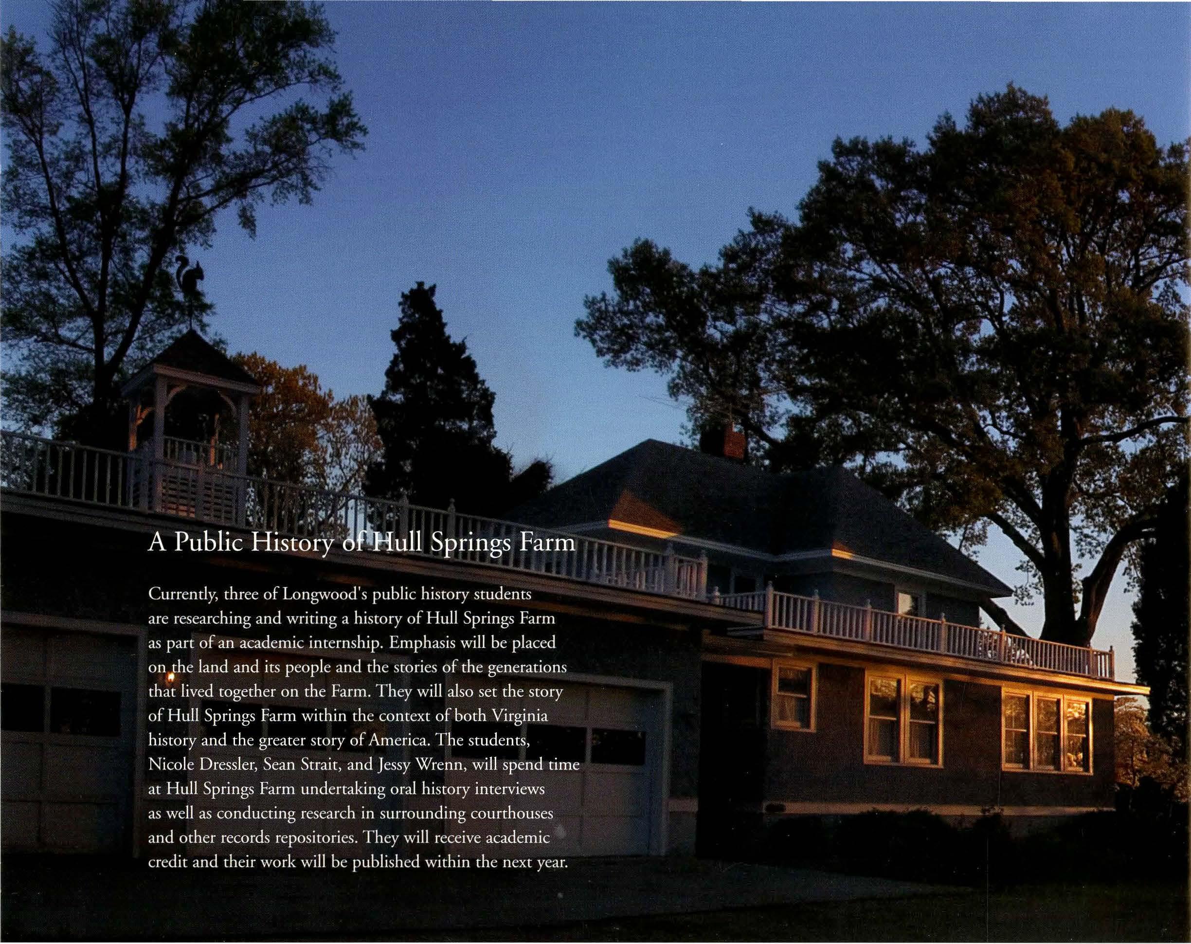 Inthesummerof2002,LongwoodMagazineintroducedHullSpringsFarm asoneofthemostsignificantgiftsinaturningpoint:TheCampaignforLongwood.