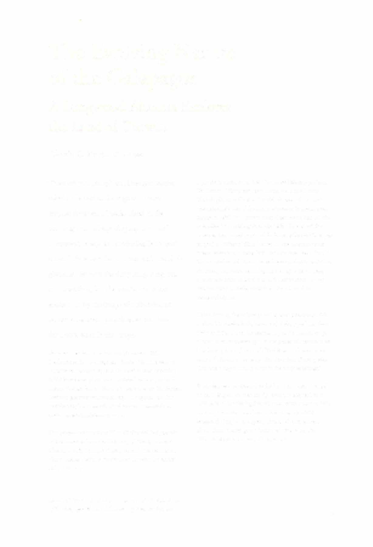 Well,asluckwouldhaveit,thisissuehasshapedupnicely. TheluckfactorweighedinwhenIwascontactedbyGlenda Booth,'62,whocoldmeshehadjustreturnedfromthe GalapagosIslandswhereshespenttwoweeksworkingwith membersofEarthwatchtohelperadicateinvasiveplant speciesfromtheotherwisepristineenvironmentofthe islands.ThissoundedlikeagreatstorytomeandGlendahas writtenafascinatingfeatureaboutherGalapagosadventure alongwithsomespectacularphotographsofthelocal inhabitants.Duringhertrip,GlendametSandraBrei!, Longwoodassociateprofessoremeritaofbiology,whowas amemberoftheEarthwatchexpedition.Serendipityisone ofmyfavoritewords.