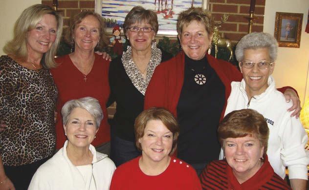 Eight Longwood classmates from the Classes of 1974 and ’75 who have been gathering regularly since graduating got together most recently for lunch at the Waverly home of Charlene Wheeler Pope ’74 (front row, center). Also present were Sally Carson Beale ’75 of Blackstone (front row, left), Helen Meredith Raetz ’74 of Richmond (front row, right), and (back row, from left) Jan Poole Iacopinelli ’75 of Disputanta, Rita Berryman Hughes ’74 of Virginia Beach, Linda Ware Moorefield ’74 of Lynchburg, Pat Watson ’75 of Wilmington, N.C., and Billy Sue Taylor ’74 of Portsmouth. “We had large celebrations as each of us turned 50 and are planning celebrations as we each jump into our 60s,” said Hughes, a member of the Longwood Board of Visitors.