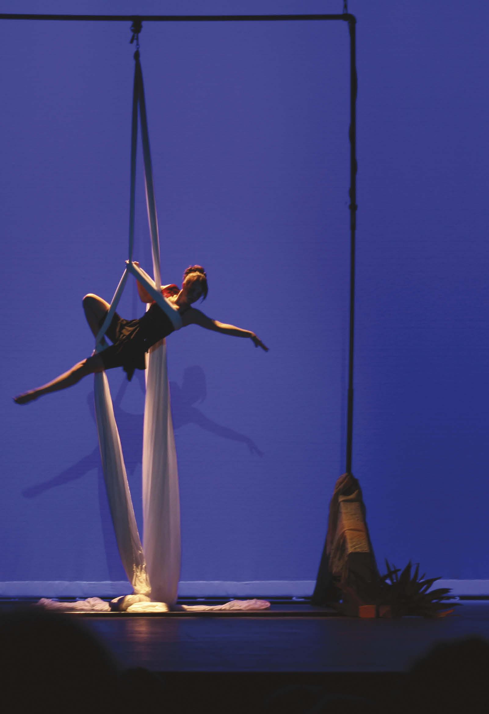 “I can’t think of a single element of the show that wasn’t influenced by what I’ve learned at Longwood,” Russell said. “My biology classes taught me about the body and its capabilities. Physics and architecture helped me build and design an aerial rig that could support 1,000 pounds of torque. Art classes helped me tap into my creativity.”