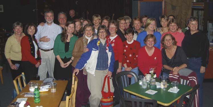 Nearly 20 members of Longwood’s chapter of Alpha Gamma Delta sorority and five other Longwood alumni gathered in December for a concert by sorority sister Elaine Dempsey ’80 (seated, far right) with her group BiG WiDE GriN at Ashland Coffee & Tea. Dempsey, a professional singer/songwriter who lives in Mill Valley, Calif., near San Francisco, plays guitar and sings with BiG WiDE GRiN, a self-described “bi-coastal” trio (fellow members Lawrence Lambert and Karl Werne live in the Tidewater area of Virginia) that writes and performs contemporary acoustic music. “This is a tight-knit group of alums who have remained close over the last 30 or so years, and we make a point of staying in touch and meeting periodically during the year,” said Mitzi Mason Lee ’82 of the alums who came out to support Dempsey.