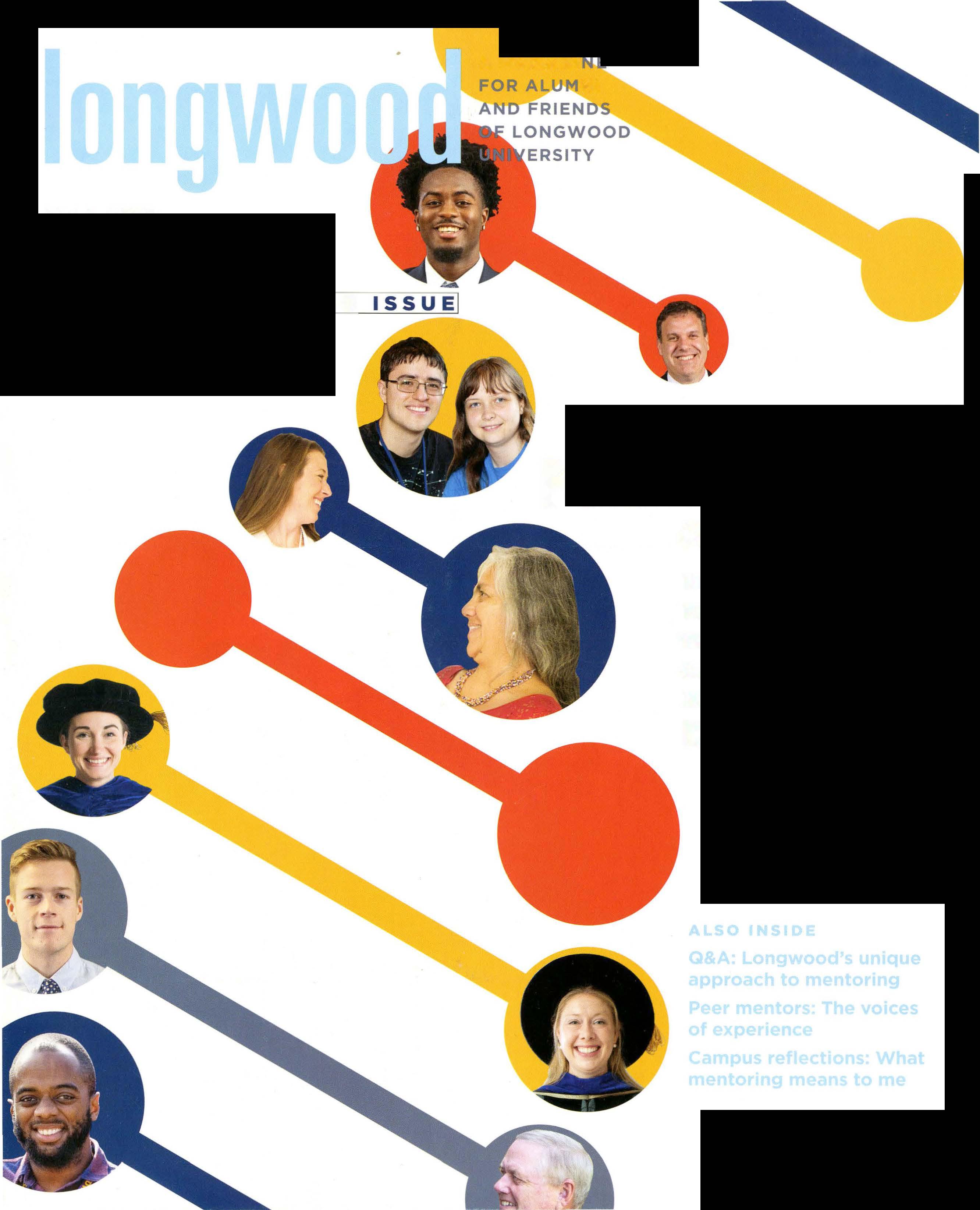 One of the most important things that happens at a place like Longwood is a mixing of the generations. The combination of acquired wisdom from faculty and staff who build careers here, and the youthful energy of those who follow, is powerful, withbenefitsflowing to all involved. For many of you, asfor me, great mentoringhas been hugely consequentialin life and work. It happens every day in every corner ofLongwood's campus. In a way, mentoringis a microcosm of the full Longwood experience, which is why we've devoted this issue of the magazineto the subject, and to sharing some stories that illustrate mentoring's life-changing power.
