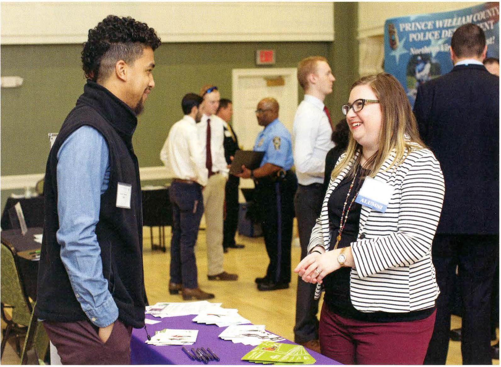 Dr.Erica Brown-Meredith '95 andDariusBaskerville'20 discusshis future.