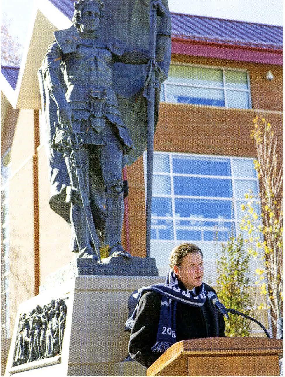 If you're visiting campus after anabsence of evenjust afew years, you'll notice quite a number of new and wonderful buildings and spaces. In all of them, we have worked hard to carry forward Longwood's distinctive spirit. In that vein, I am especially proud of the new statue of Joan of Arc, created by acclaimed Scottish sculptor Alexander Stoddart, which was dedicated in November and now stands formidably at the south end of Brock Commons.