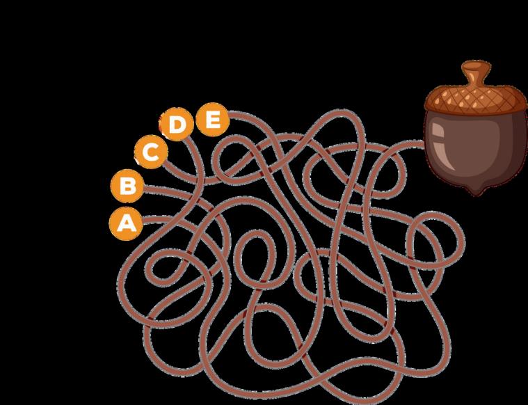 Help Oakley find his acorn! Trace the lines to figure out which one leads him to it.