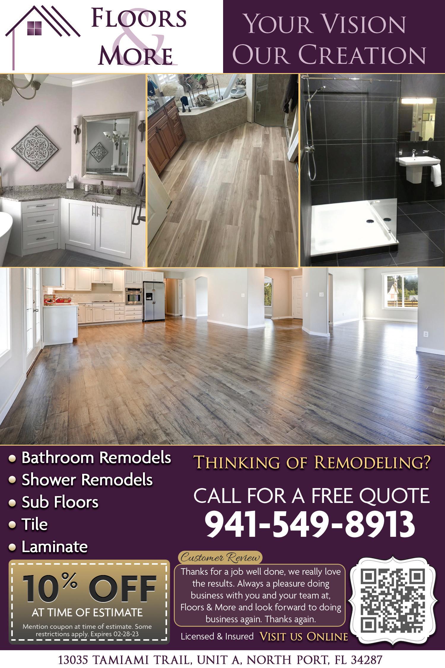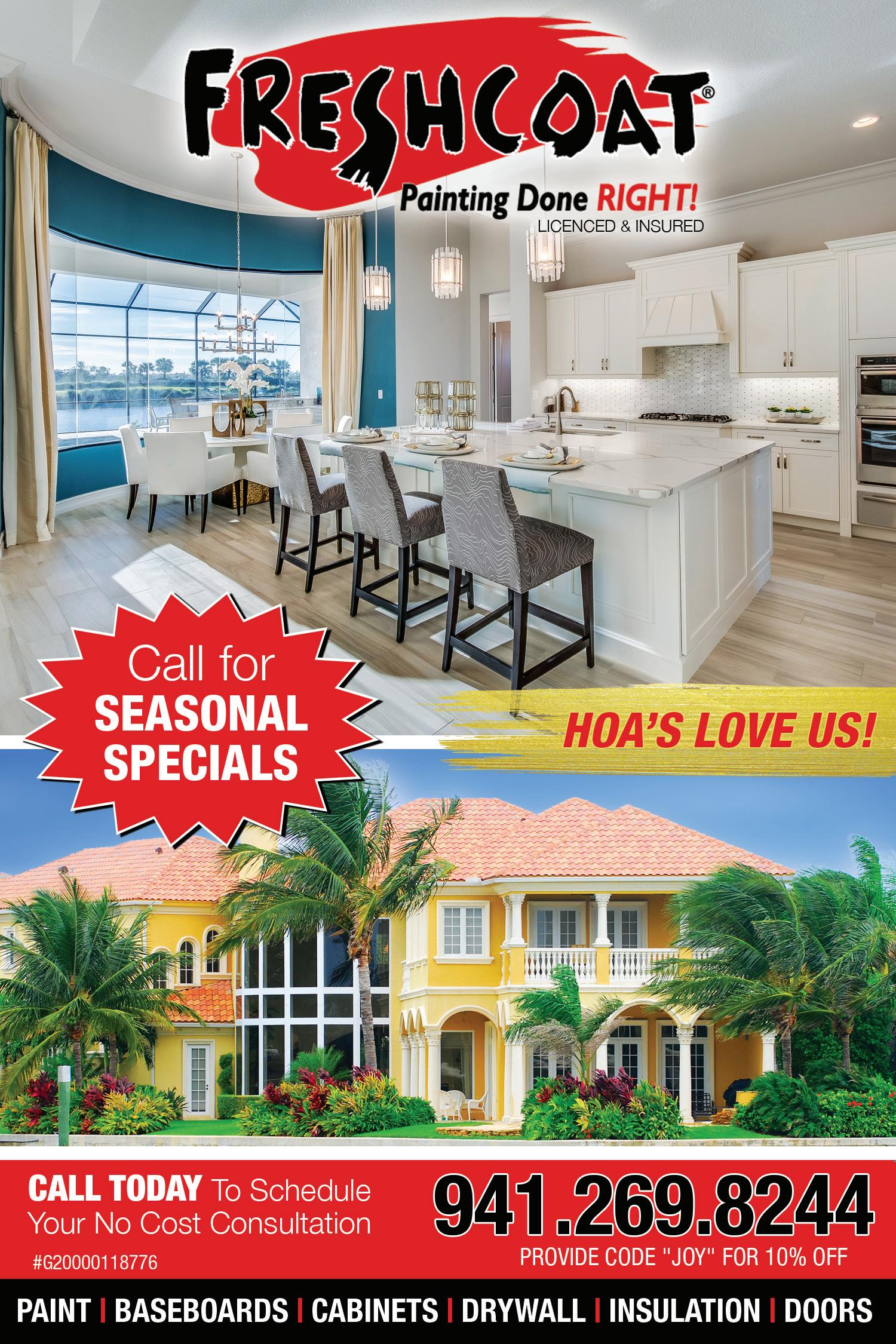 29 80,000 MAGAZINES MAILED EVERY 3 WEEKS TO PREFERRED HOMEOWNERS Call Today For a Free Estimate! CRC1331267 CAC1814772 FULL-SERVICE CONTRACTOR 941.462.2327 Renovations • Remodels • Additions & New Construction Handyman Services • Drywall Repair and Installation • LVT Flooring Tile Work - Backsplashes/Showers/Floors Screening - Pools/Lanais/Front Entryway Enclosures Interior Paint and Trim • Exterior Paint & Pressure Washing Seal & Paint Garage Floors, Pavers, and Concrete A/C Service, Maintenance and New Installations 10%off Total of $15 0 0 or More with IYH Ad Mention Check Us Out!