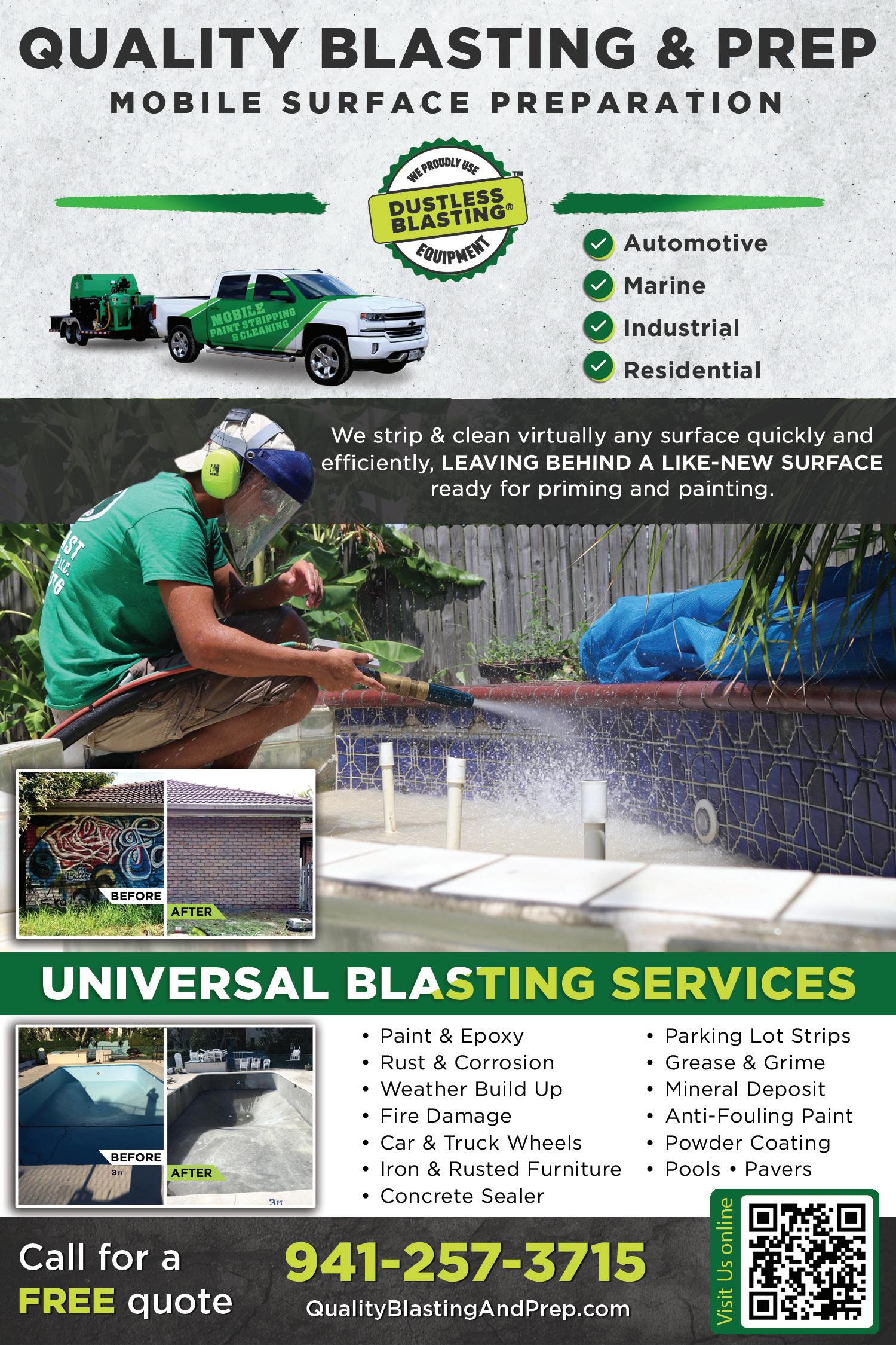 18 MARCH 6 2023 | Local Professionals Only A Call Away | ImproveYourHouse.com XtremePaverSolutionsInc.com PAVER RESTORATION & MAINTENANCE OF INTERLOCKING STONES 941-254-6276 Paver Cleaning & Sealing • Stripping Bad Sealers Joint Stabilization with Polymeric Sand Paver Repair • Garage Floor Sealing • House Washing 941-254-6276 10% OFF STRIPPING OF BAD SEALER (Includes up to 2 applications.) Call for details. CALL US TODAY FOR A FREE ESTIMATE! VISIT OUR WEBSITE!