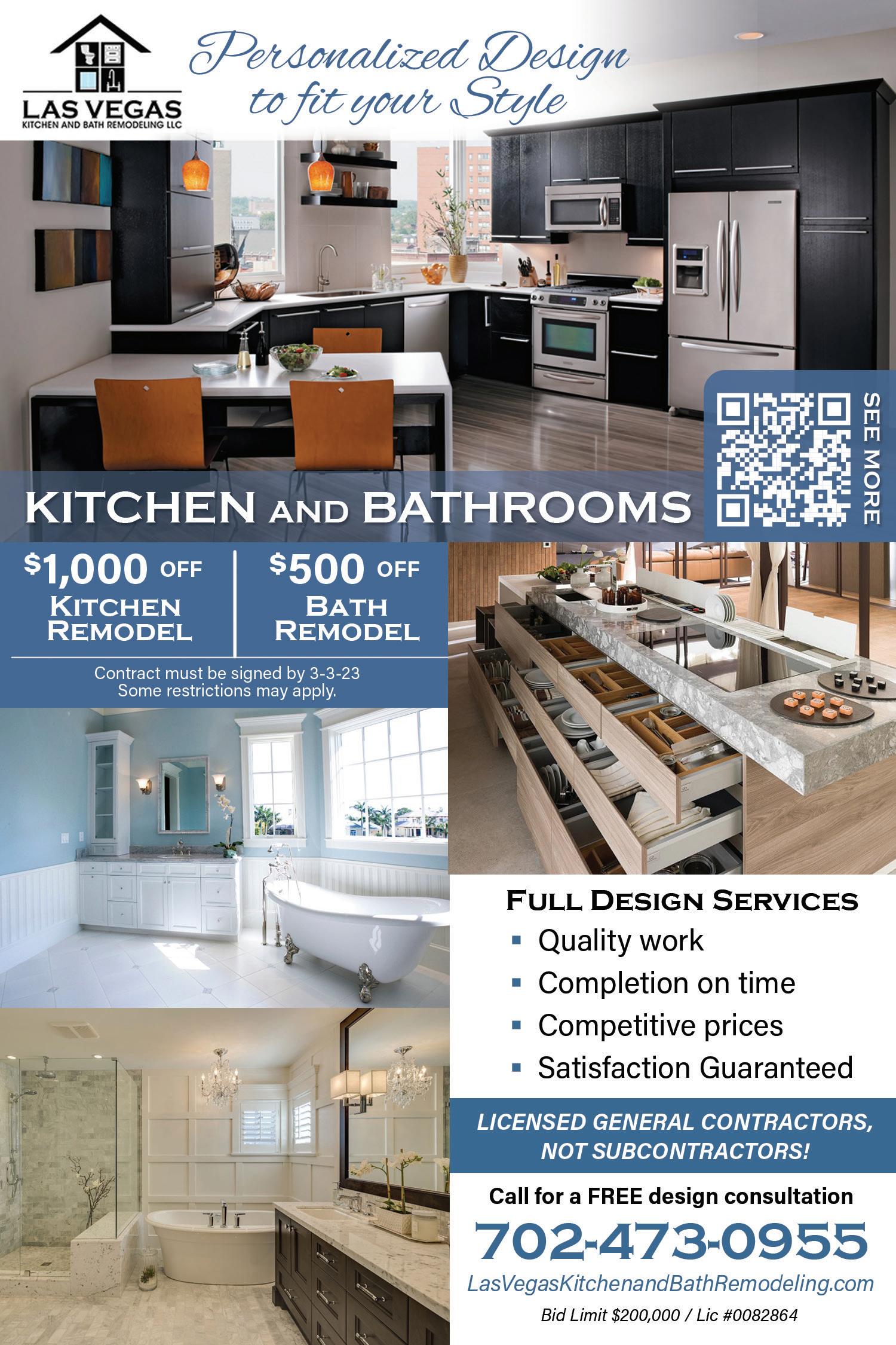 19 200,000 MAGAZINES MAILED EVERY 3 WEEKS TO PREFERRED HOMEOWNERS FINANCING AVAILABLE! FINANCING AVAILABLE! VISIT OUR WEBSITE Kitchen Remodeling Bathroom Remodeling 3D Design and Render Full House Remodels New Home Additions www.homeandbeyondlv.com info@homeandbeyondlv.com 4625 Wynn Road, Unit C-103, Las Vegas, NV, 89103 NV License # 0081510 (702)846-2672 Call Now for your FREE Estimate and Creative Session! DESIGN AND CONSTRUCTION DESIGN AND CONSTRUCTION