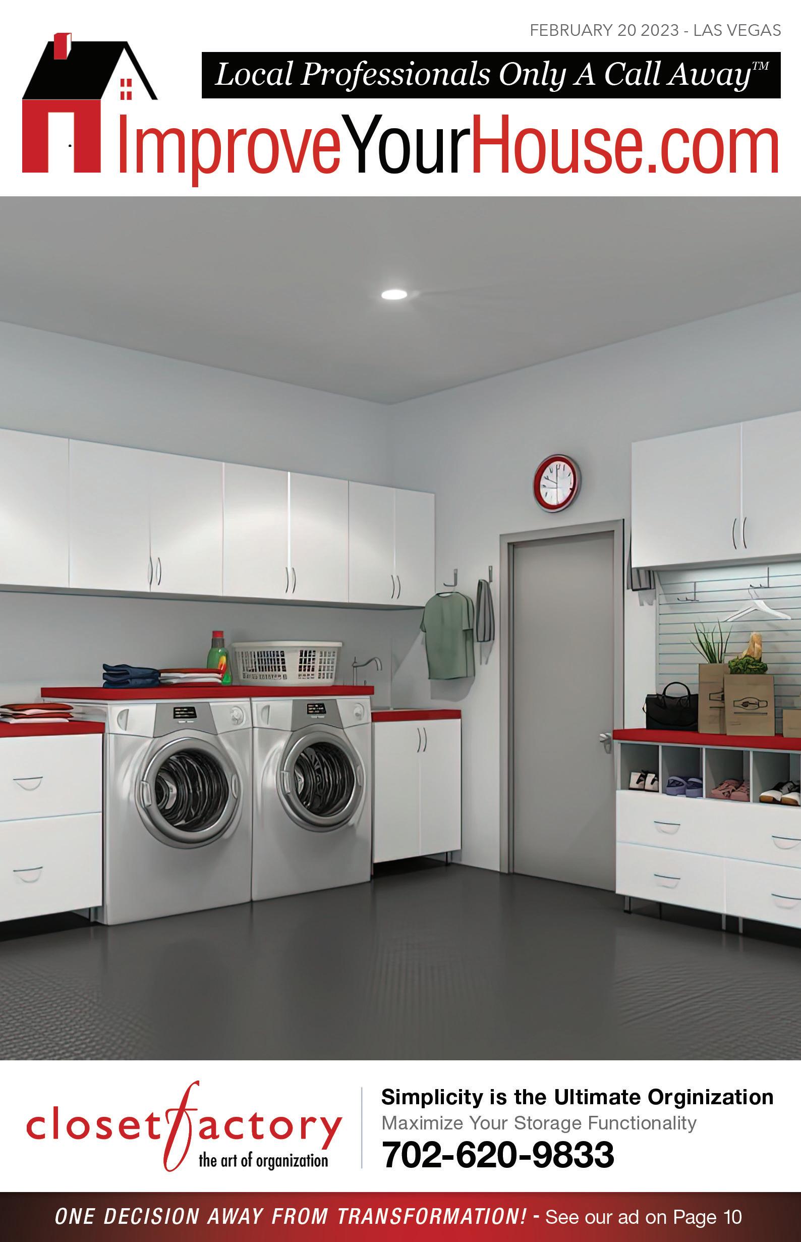 Call for a free design consultation and estimate today! ( 7 0 2) 620-9833 or visit us online at closetfactory.com Address: 6545 S Decatur Blvd., Ste. 150 Las Vegas NV 89118 ©2022 Closet Factory. All rights reserved. A Ver y 10 FEBRUARY 20 2023 | Local Professionals Only A Call Away | ImproveYourHouse.com