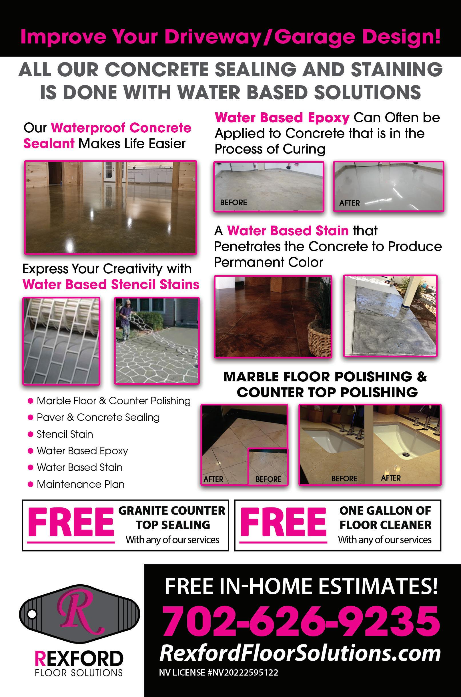 57 200,000 MAGAZINES MAILED EVERY 3 WEEKS TO PREFERRED HOMEOWNERS 702-706-1198 CALL TODAY FOR A FREE ESTIMATE! 702-706-1198 WWW.CTVEGAS.COM MAKING CONCRETE BEAUTIFUL SINCE 1998 DRIVEWAYS | GARAGES | INTERIORS | PATIOS | WALKWAYS | COURTYARDS | POOL DECKS | ROCK FEATURES RESEALING OPTIONS FOR ANY SURFACE MULTIPLE TEXTURE & COLORING OPTIONS MAINTENANCE PROGRAM AVAILABLE SLIP RESISTANT SURFACE TEXTURE & COATINGS WITH OPTIONS TOUCH-UP & RECOLORING OPTIONS $200DISCOUNT Minimum purchase required. Not valid with other offers. EXP 3/24/23. Bonded | Insured | Lic#: 59531