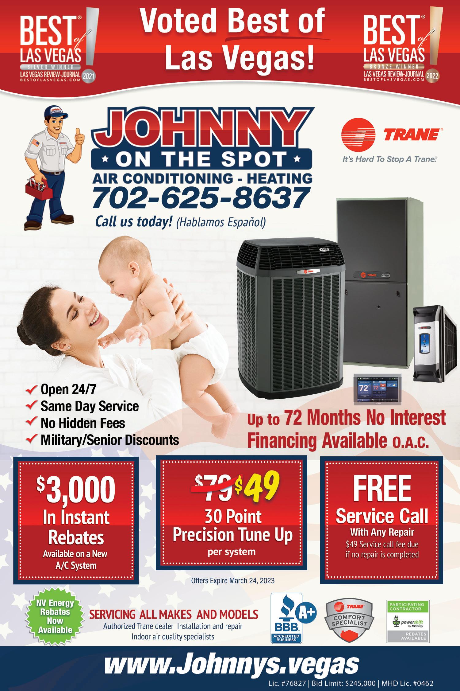 83 200,000 MAGAZINES MAILED EVERY 3 WEEKS TO PREFERRED HOMEOWNERS YOUR HEATING AND COOLING SPECIALIST Over 65 years combined technical experience Family owned and operated OPEN 24/7 • SAME DAY SERVICE • NO HIDDEN FEES • MILITARY/SENIOR DISCOUNTS OPEN • SERVICE FEES Offers may not be combined and expire 3/24/23 DO NOT DE L AY, CALL TODAY 702-269-1317 702-269-1317 airdonerightnow.com airdonerightnow.com 100% SATISFACTION GUARANTEED FINANCING AVAILABLE o.a.c. We service all makes and models Check out our 5 STAR REVIEWS Bonded • Insured License #62716 REPAIR / INSTALLATION / MAINTENANCE FULL 16 PT TUNE UP Complete cooling or heating inspection regular $88 with same day repairs • regular $35 $ 35 SPECIAL FREE SERVICE CALL $ 1,500 OFF UP TO SELECT HEATING AND COOLING SYSTEMS