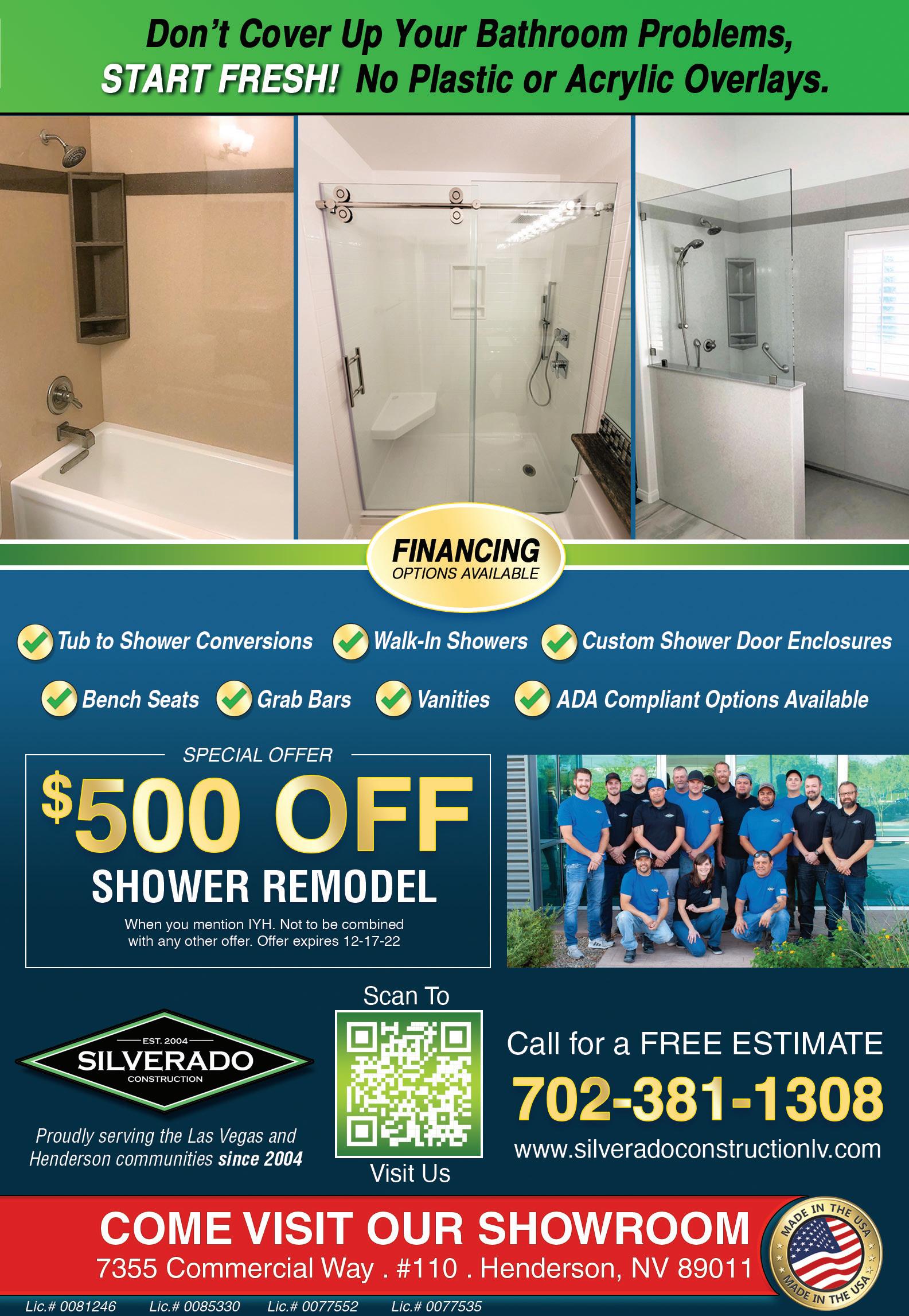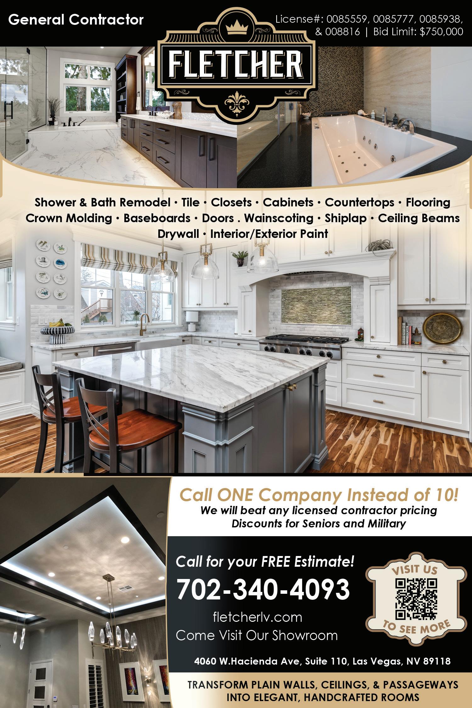 81 200,000 MAGAZINES MAILED EVERY 3 WEEKS TO PREFERRED HOMEOWNERS – Over 22 Years Of Experience – Quality Work – On Time and On Budget – Architect Design Services Available – All Room Renovations including Kitchen and Bath Renovations – Interior and Exterior Painting – Handicap Accessibility 702-625-9970 Call today to schedule your FREE estimate! We Offer Senior and Military Discounts! FINANCING AVAILABLE NO INTEREST FOR 6 MONTHS OR LOW APR O.A.C. on any job over $5,000 CALL FOR DETAILS. $500 o $500 o COMMERCIAL & RESIDENTIAL VISIT US! aaconstructionla.com 702.381.3873 Best Price Guarantee! YOU DREAM IT WE BUILD IT License #0081826