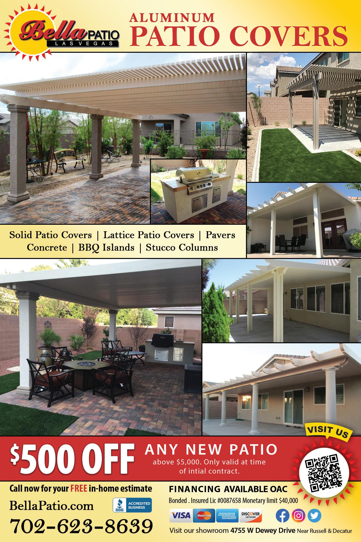 55 200,000 MAGAZINES MAILED EVERY 3 WEEKS TO PREFERRED HOMEOWNERS We Are Your Complete Call us at 702-418-3765 www.gotshadenow.com License #76102 POOL SHADE SIDE WIRE CANOPY HYPERBOLIC (TWIST) TRIANGLE SHADE SAILS PERGOLA COVERS FREE PHONE PRICING with picture of space and size of area. Cost / fee applies for on site consultations and designs but can be 100% credited toward the work to be done by GOT SHADE.
