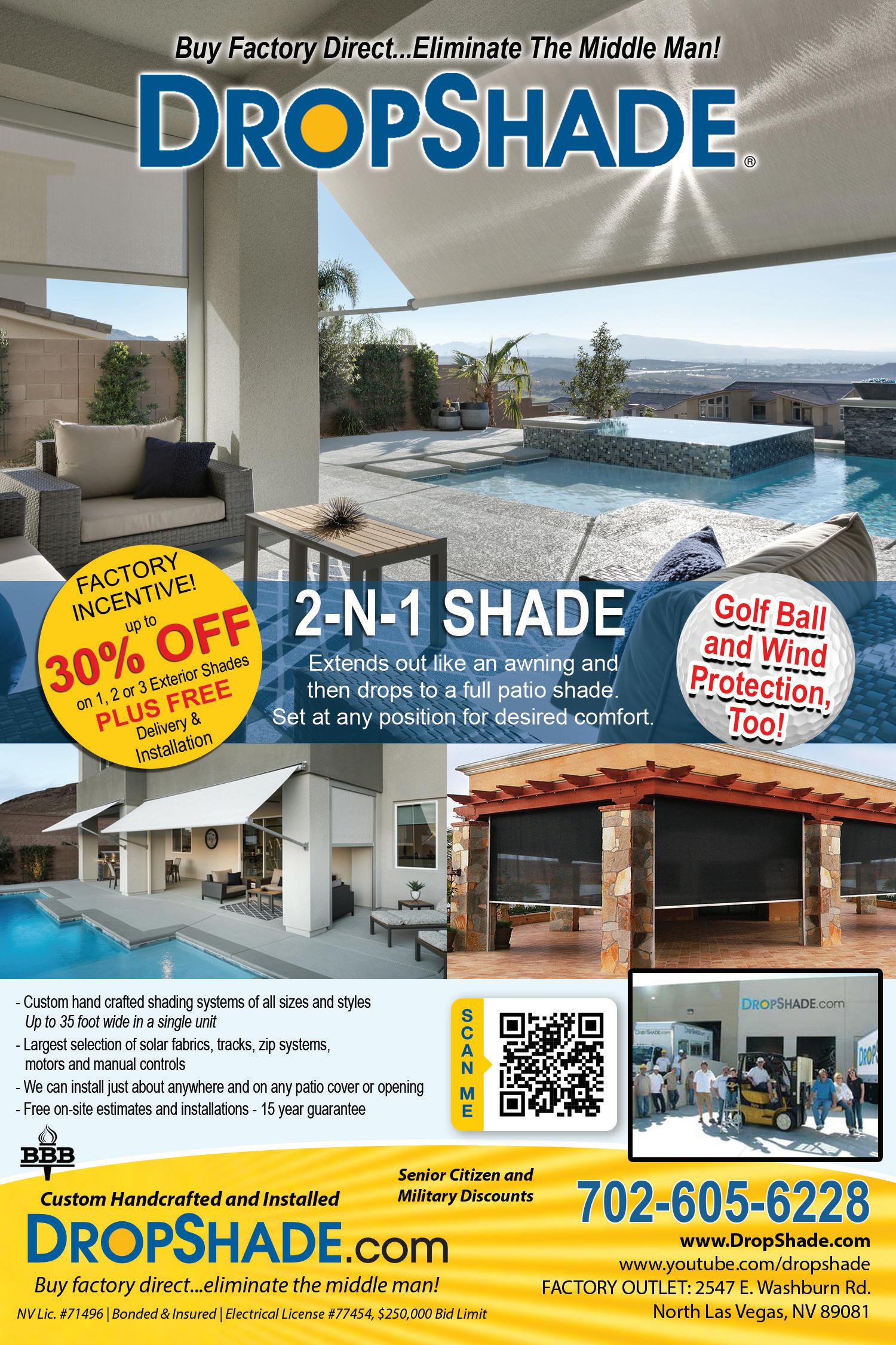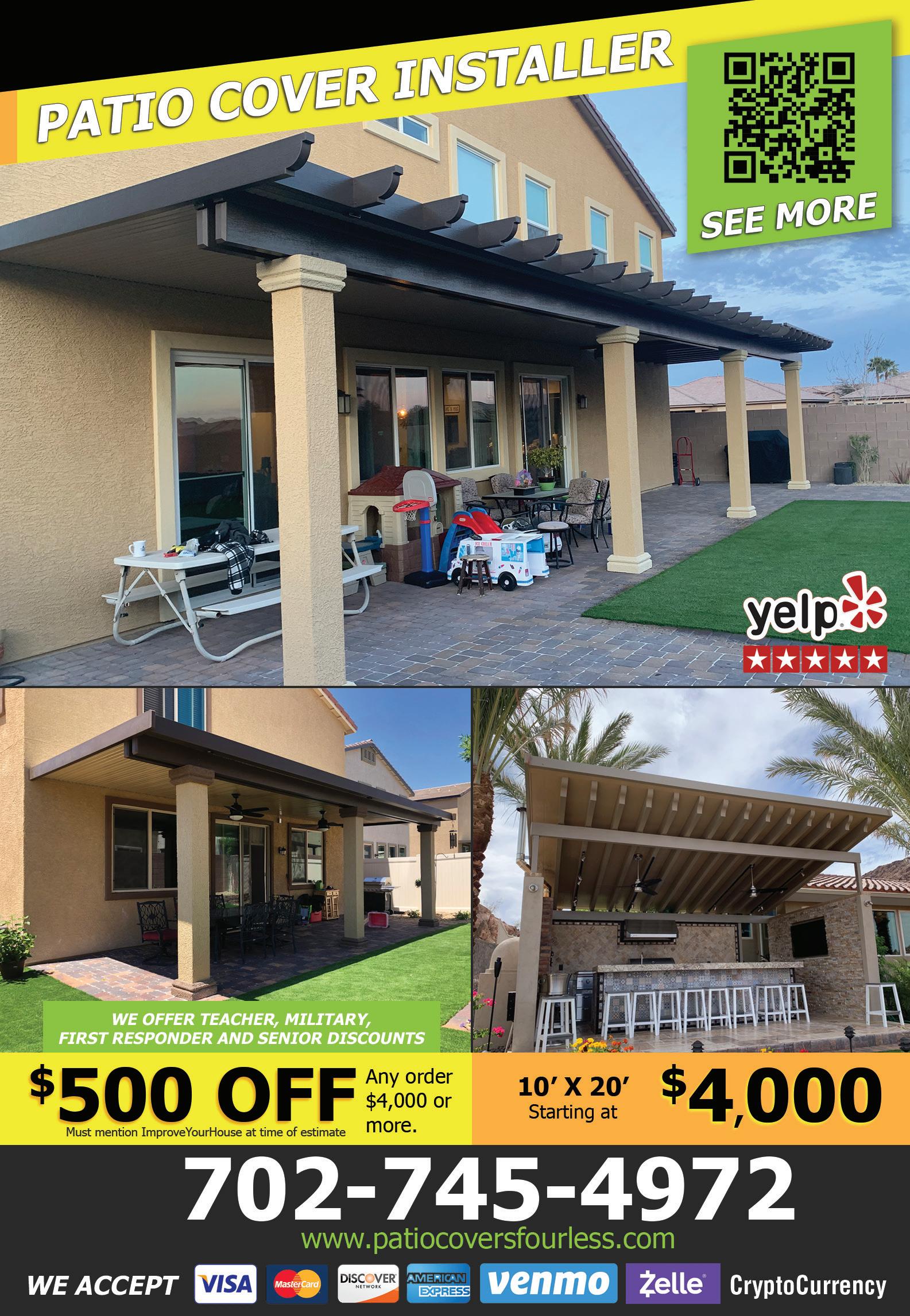 68 OCTOBER 24 2022 | Local Professionals Only A Call Away | ImproveYourHouse.com We Are Your Complete Call us at 702-418-3765 www.gotshadenow.com License #76102 POOL SHADE SIDE WIRE CANOPY HYPERBOLIC (TWIST) TRIANGLE SHADE SAILS PERGOLA COVERS FREE PHONE PRICING with picture of space and size of area. Cost / fee applies for on site consultations and designs but can be 100% credited toward the work to be done by GOT SHADE.