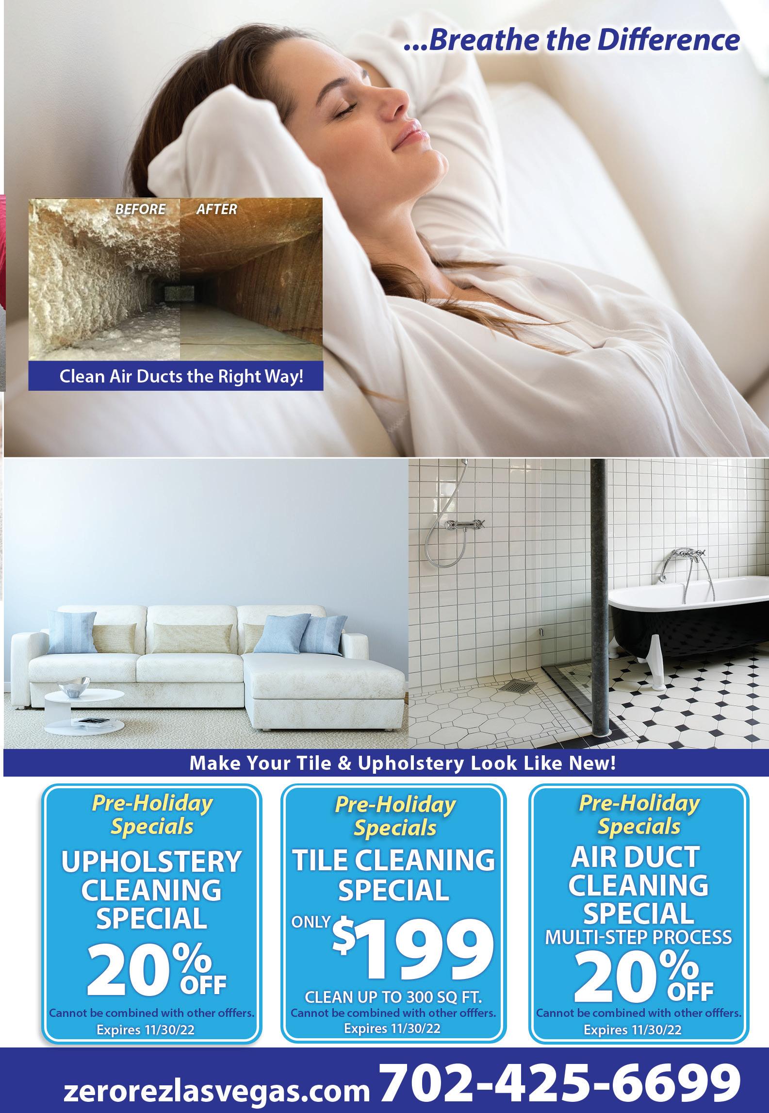 32 OCTOBER 24 2022 | Local Professionals Only A Call Away | ImproveYourHouse.com 702.846.9557 call or text for a FREE estimate breathecleanlasvegas.com COMMERCIAL & RESIDENTIAL FREE 10% OFF FURNACE & HVAC CLEANING For All Active and Retired MILITARY, FIRE and POLICE DRYER VENT CLEANING with every air duct cleaning with every air duct cleaning Can be combined with other offers. NOT VALID WITH ANY OTHER OFFERS EXPIRES 11.26.22 IYH NOT VALID WITH ANY OTHER OFFERS EXPIRES 11.26.22 IYH FREE