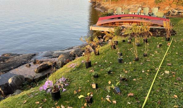 Finding places to select and purchase the right Ontariogrown native plants has gotten easier since groups like Muskoka Conservancy, The Natural Edge and Love Your Lake through the Muskoka Watershed Council, as well as local magazine and newspaper and internet articles and YouTube videos are educating those of us with shoreline property of the urgent need for preserving our soft shorelines and protecting our lake water. As a spin off, this need has owners looking at the rest of their property as a home for selective native planting, reducing the need for the over-use but not necessarily the elimination of grass lawns and ornamental gardens and therefor the expense of irrigation systems, soil amenities and garden maintenance.