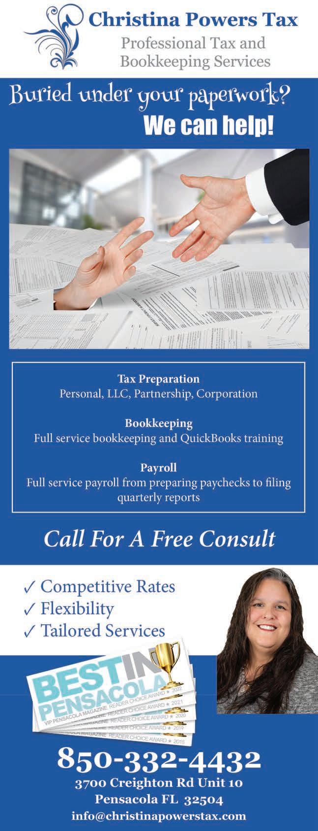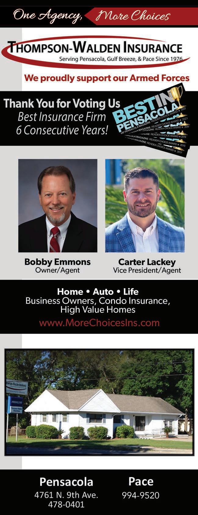 Gratitude for the blessings including family, friends, and health. Finish this statement, I AM PENSACOLA because… Pensacola has provided opportunities for me to grow professionally and personally. I appreciate the mentors and the friends who have helped me serve the community as an Ambassador for the Pensacola Chamber, board member of BBB, and Rotary. Pensacola has had a dynamic in uence in my life; I now enjoy seeing many of my former students successful as business owners and leaders in the community.