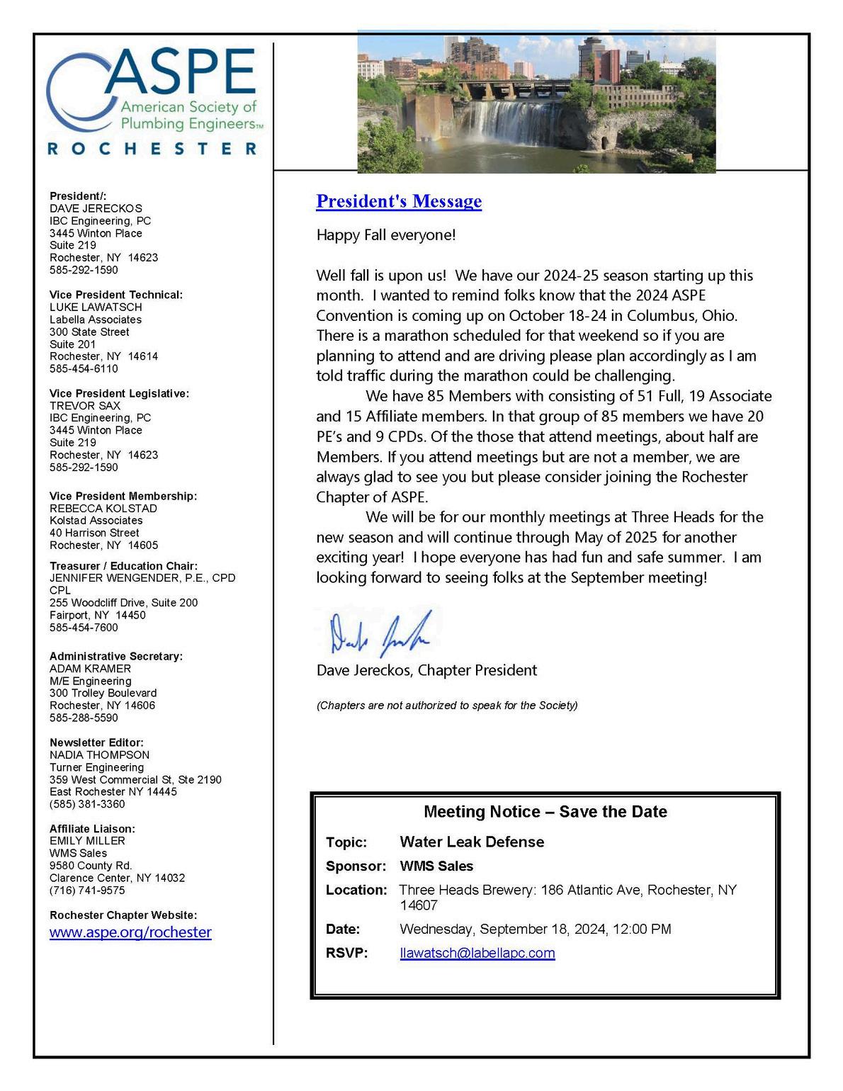 American Society of Plumbing Engineers, Rochester NY Chapter