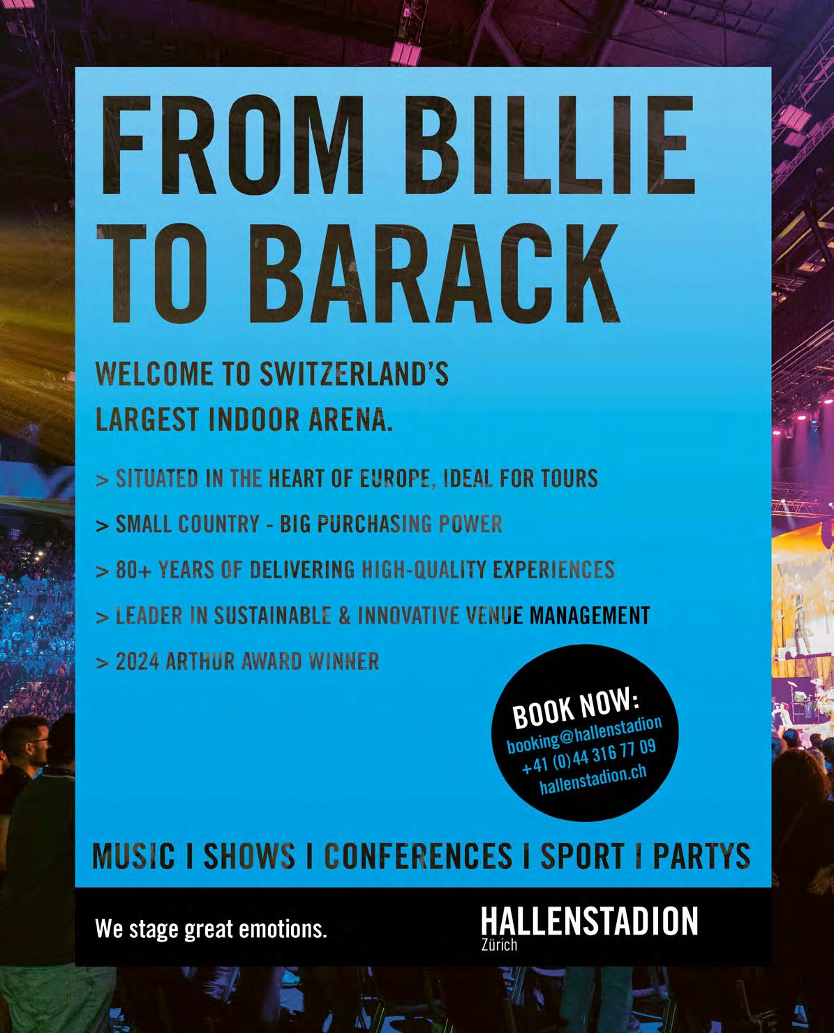 “Zurich remains a significant city for tours and shows in Europe,” says Philipp Musshafen at the flagship Hallenstadion. “While the specific events hosted in Zurich may vary due to factors like tour schedules, artist preferences, and logistical considerations, the city consistently attracts a wealth of top-tier entertainment. Moreover, Zurich’s affluent population and robust economy further en-
