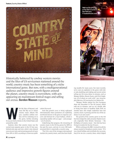 TOURING Crisis or Cruising? COUNTRY MUSIC It’s Gone Global