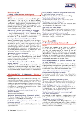 Tommy Bruce | USA Co-founder | Full Stop Management Age 29 As student body president at the University of Arizona, Tommy brought the likes of Kanye West, Kelly Clarkson, Jay-Z and Katy Perry to perform on campus. In 2009, he landed a job in CAA’s New York office, where he helped sign Meghan Trainor. Tommy moved to Los Angeles in 2015 where he became an agent. Earlier this year, he and Jeffrey Azoff departed CAA to establish Full Stop Management whose early clients include Harry Styles and Meghan Trainor. Do you think your time as an agent will benefit you and the talent you manage? Perspective on different areas of the business is always beneficial, regardless of the industry. It provides a point of view and adds value in a way that others in my position wouldn’t otherwise have if they hadn’t previously been an agent. As one of the young leaders of an even younger company, who do you turn to for advice? I’m fortunate to work with my best friend, Jeffrey. He is my go-to on all things: advice, counsel, eating, and just life in general. What’s your proudest achievement to date? The launch of Full Stop Management. It’s been the ride of my life so far and I couldn’t be more excited to see where we go. What’s the biggest lesson you’ve learned so far? Failure, genuine failure, is the best lesson anyone can ask for. I’ve learned more from my failures than from my successes and I am grateful for those experiences early on. What advice would you give to someone wanting to work in the music business? Every position you take, treat it like it was what you were born to do. I guarantee leaders will take notice and it will elevate you. What are you currently working on? Building Full Stop Management. Meghan [Trainor] is on a sold-out North American tour, and Harry [Styles] is finishing his first film, Christopher Nolan’s Dunkirk. Gearing up for a massive 2017 for the entire company.