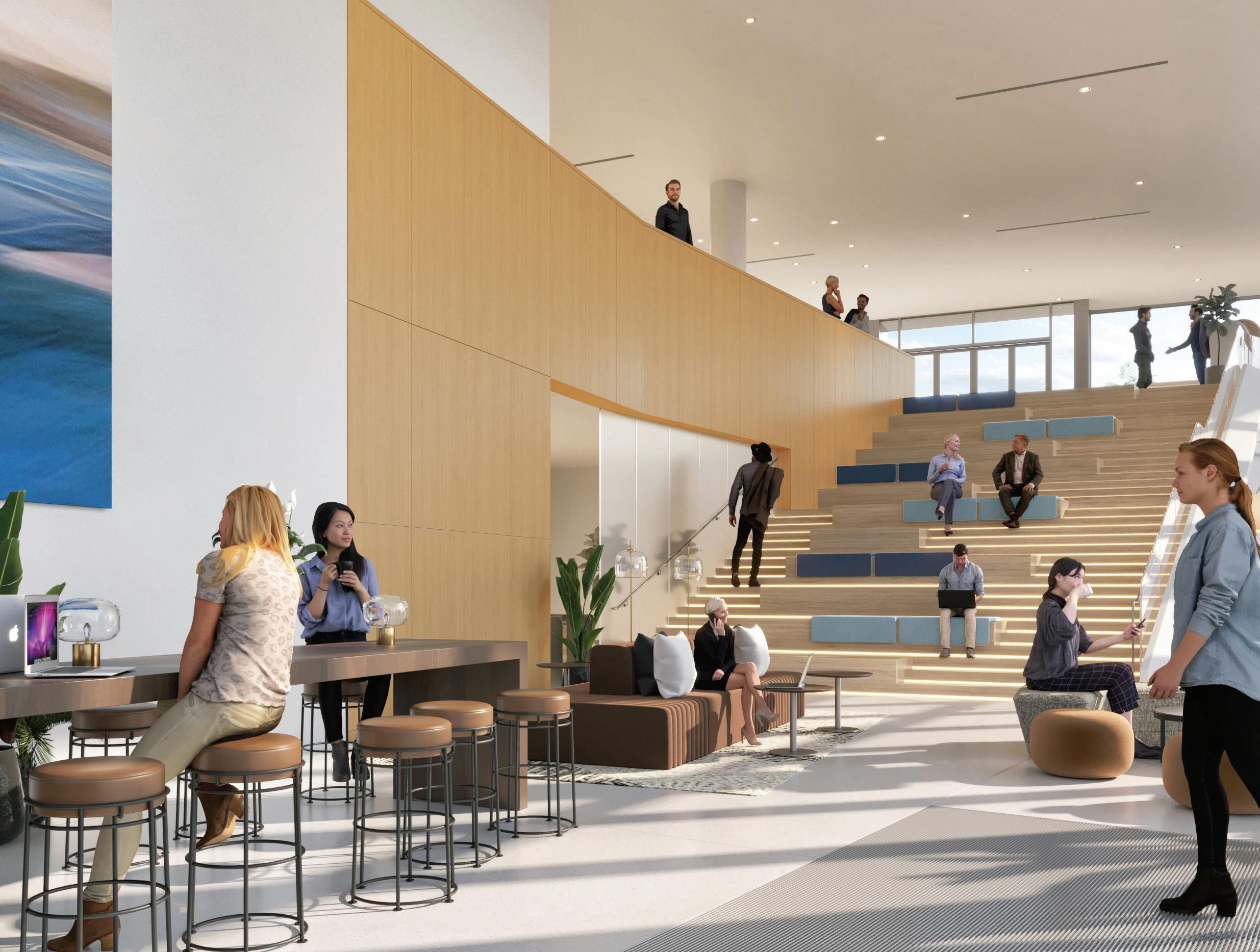 This project, slated to be finished by the end of 2023, is a campus of 3 life science buildings, an amenity building, an underground parking structure, and amenities including a food hall, conference center and fitness area.