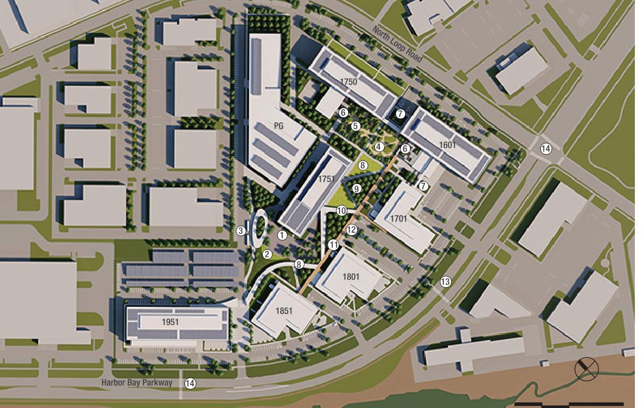 TOTAL BUILT GROSS CAMPUS AREA: 900,000 sf