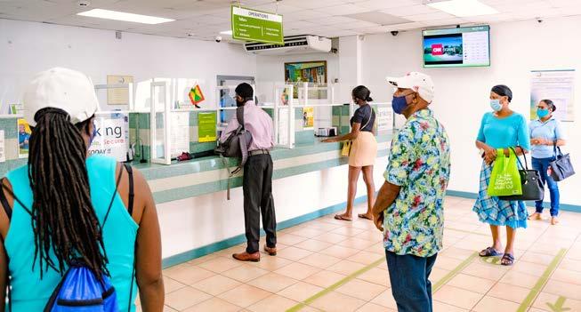 When unimaginable things were happening: Bank employees assist with sending relief items to St. Vincent following the catastrophic volcanic eruption there in 2021, while being masked due to the COVID-19 pandemic, when vaccines were not yet been available.
