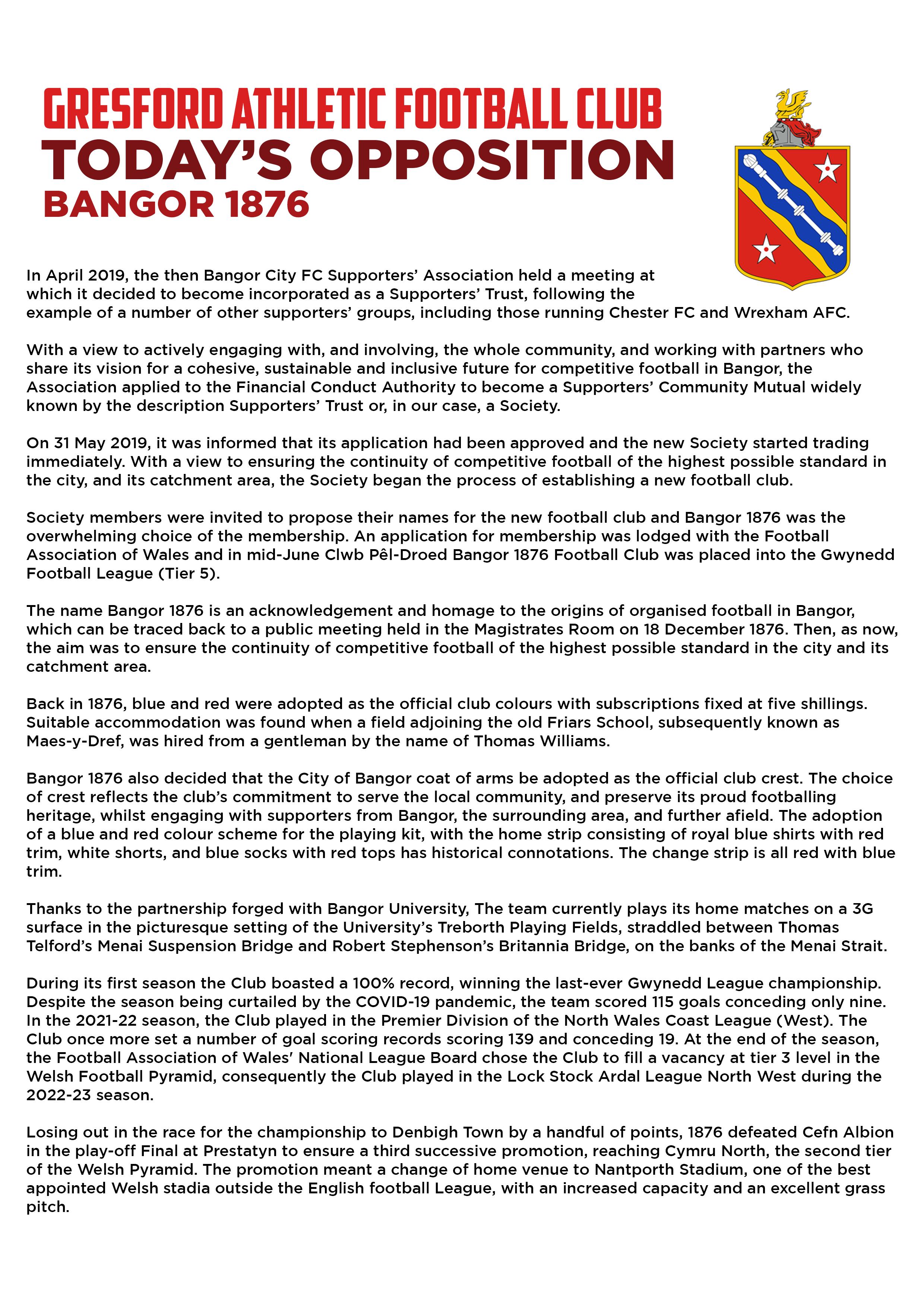 THE COLLIERS | Gresford Athletic vs Bangor 1876 | 2024/25 JD Cymru North by Gresford Athletic FC - Issuu