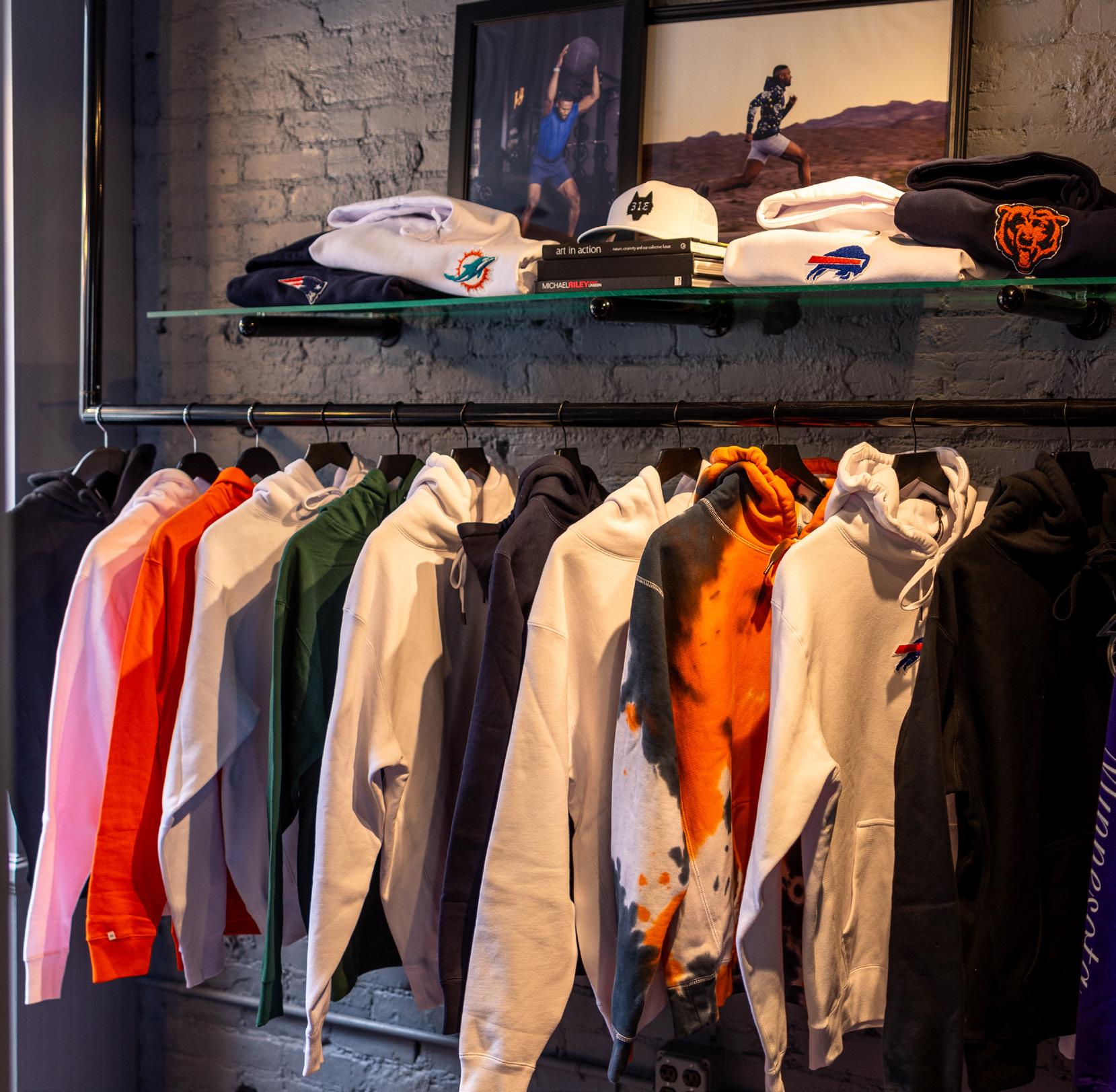 During the draft, our Greyson flagship store, located in the heart of Downtown Detroit, hosted an exclusive experience. Fans were given the opportunity to customize their own signature Greyson Fireside Hoodie with artwork from select NFL Teams. In addition to teams like the Kansas City Chiefs and the Chicago Bears, we also presented an exclusive limited collaboration with our hometown team, the Detroit Lions.