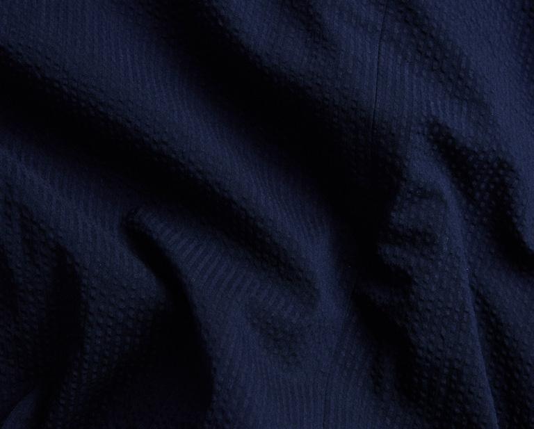 Seersucker fabric, renowned for its puckered texture, is a classic choice for warmweather style. Its alternating smooth and textured stripes create a distinctive look that exudes sophistication and comfort. It’s one of those fabrics you’ll keep reaching for all season long.