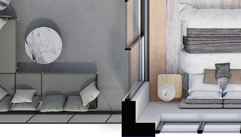 Dive into the details with individual renderings of the floor plans for each unique suite in The Breeze.