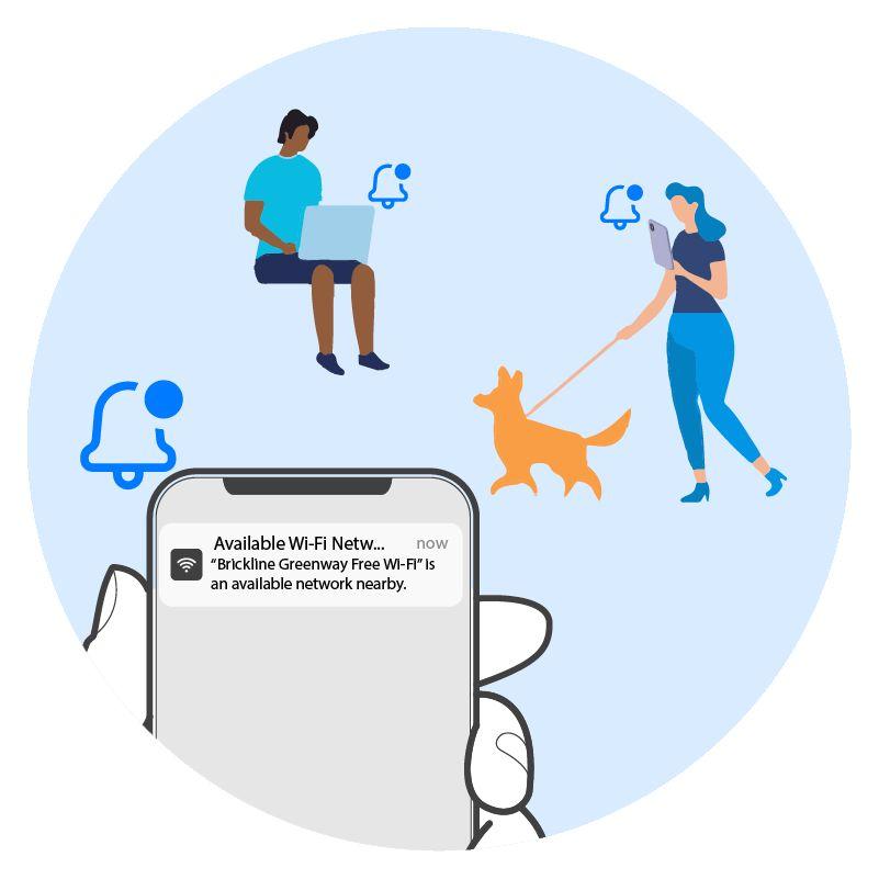 Visitorscandiscoverfree greenwayWiFionthe Bricklinethroughsignage orpushnotifications(if enabledbyusers).