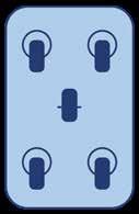 Paraurti perimetrale in PVC sul bordo superiore del carrello Con base chiusa per spostamento con carrelli transpallet o elevatori a forche Disposiz.ruote E : 4 girevoli e 1 fissa con sospensione molla per un contatto sicuro col pavimento e una buona stabilità direzionale