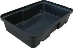 Gamma di vasche di raccolta disponibili nelle capacità di 20.30,40,60 e 100 litri con griglia in vari colori - Ideali per lo stoccaggio di piccoli contenitori in laboratori chimici, fabbriche, magazzini, università, scuole, garages, fattorie ecc..Griglia con inserti ergonomici di presa manuale e fori per ispezione e inserimento pompa - Utilizzabili con o senza griglia -Design salvaspazio e ottima maneggevolezza - Facili da pulire - Griglia standard nel colore neroST1-100-YE/GR/BK-BK: