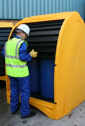 Utilizzabile per lo stoccaggio di un solo fusto da lt 205, secondo le norme vigenti nel Paese di origine