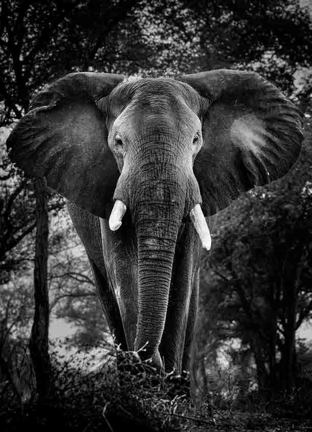 Among the palms, the forest elephant slips away like a ghost perfectly adapted, yet increasingly endangered.