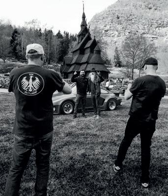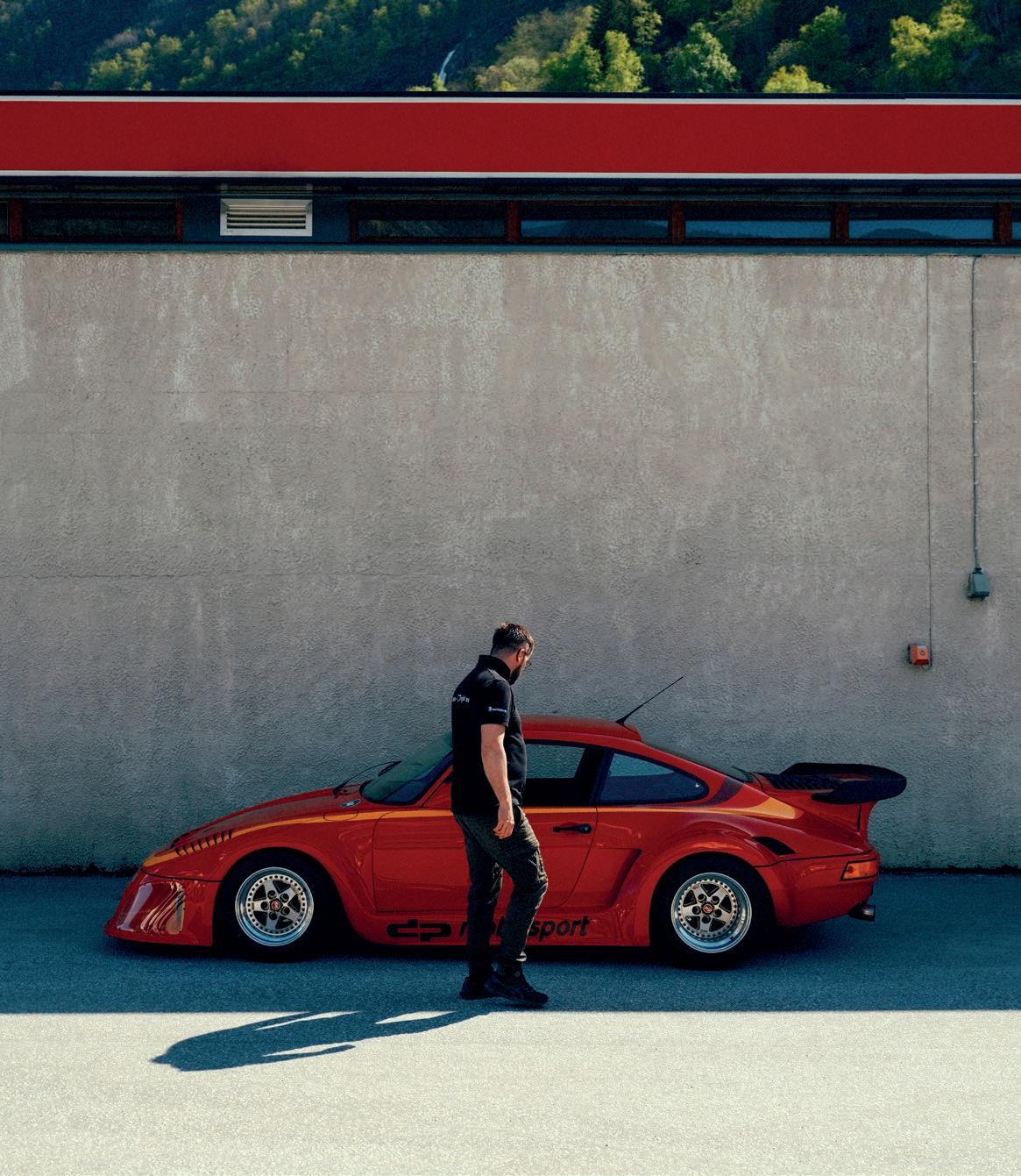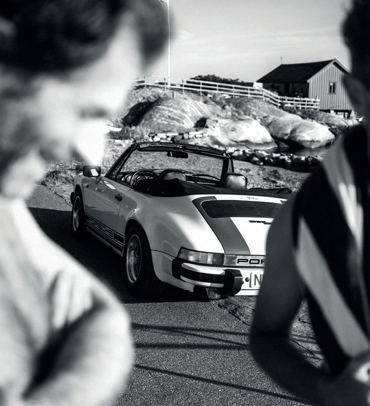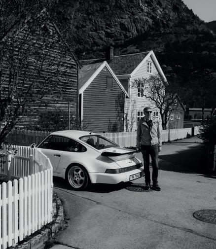 Han smiler lurt mens han lukker døren på 964-en med et solid dunk. Motoren starter umiddelbart med en dyp basslyd. Duften av uforbrent bensin og hestekrefter fyller luften. Den hvite bilen med sine brede bakskjermer passer perfekt inn mellom de klassiske trehusene. Det er ikke til å nekte for at vi også kunne tenkt oss en 964 Turbo.