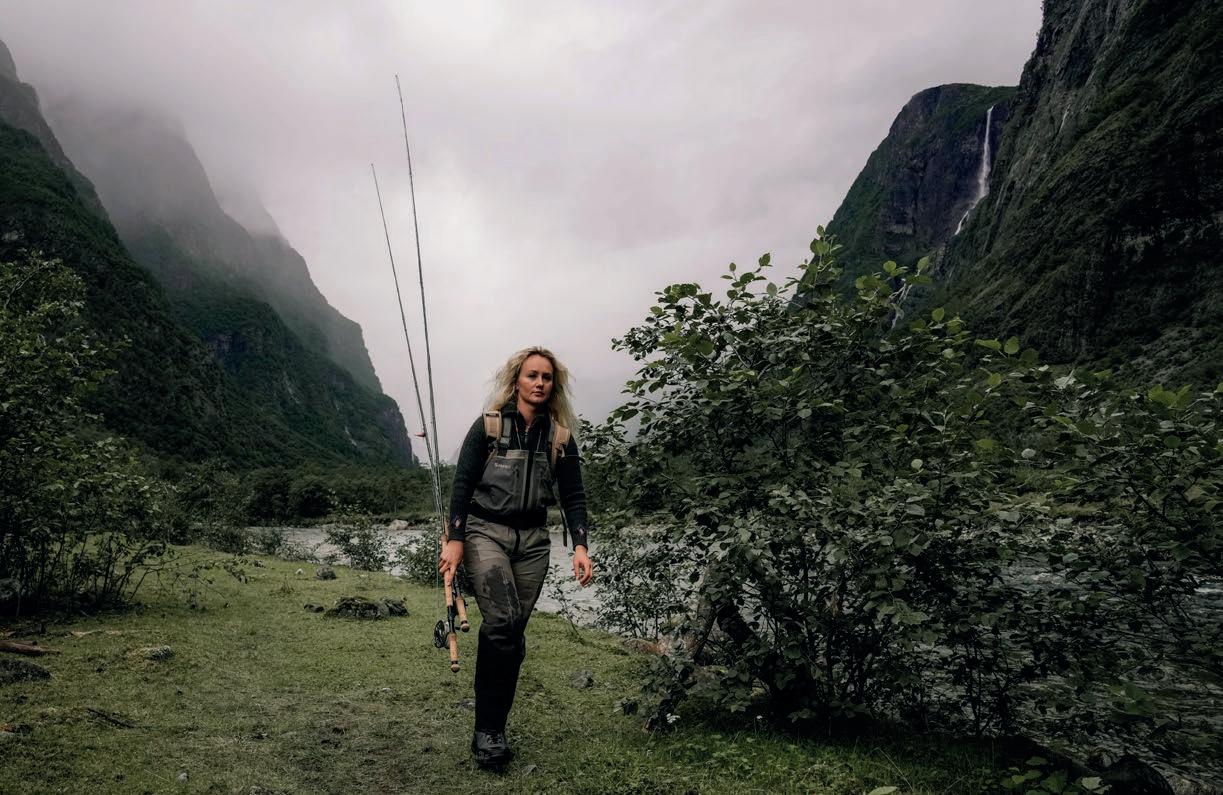 Vi treffer henne i en flomstor Nærøydalselv i Voss, der hun har tilbrakt en forgjeves fiskenatt ute i de frådende vannmassene. Det er ikke slike forhold laksen biter under, men som ved et mirakel har vannet trukket seg tilbake igjen. Lene har trua på det kommende døgnet.