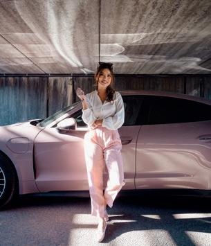 – Akkurat som med jobben er jeg opptatt av å nyte ferden underveis, og bilen har blitt mye mer enn et fremkomstmiddel for meg. Jeg er definitivt bitt av Porsche-basillen, smiler hun selvironisk. Av og til kjennes det nesten ut som om jeg har blitt med i en kult, et hemmelig samfunn med en vanedannende «hemmelighet». I dag kan jeg ikke forestille meg livet uten Porschen min. Den er så mye mer enn en bil... Den har blitt en drakt og en rusting. En forlengelse av meg selv, og en stor og viktig del av livet mitt, understreker hun, før hun forsvinner rundt hjørnet mens det glimter i panseret til den spreke rosalilla Taycanen.