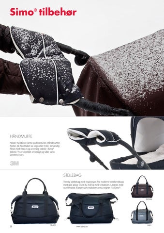 Håndmuffe Holder hendene varme på trilleturen. Håndmuffen festes på håndtaket av vogn eller trille. Innvendig fôret med fleece og utvendig tekstil i Simo® tekstil. Yttertekstilet er belagt og tåler vann. Leveres i sort.