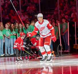 With a gleam in his eye and a glint off his helmet, right wing Austin Watson is introduced prior to Detroit’s Red & White Game on Sept. 21. Watson and Team White skated to a 3-2 victory over Team Red before a sellout crowd of 10,834 at Van Andel Arena.