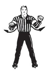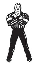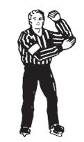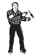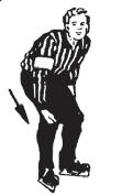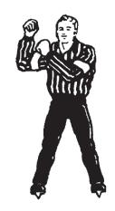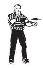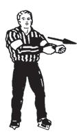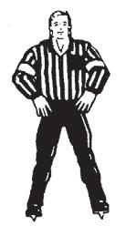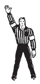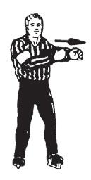 Referee extends his arm and points to the penalized player until the penalized team regains possession of the puck.
