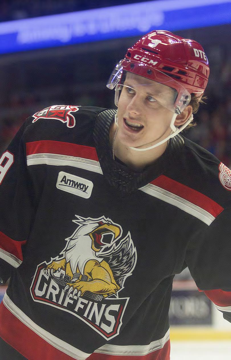 Swedish rookie Elmer Soderblom is finding his game at the AHL level after spending the first half of the season with the Red Wings. The 6-8 forward has exceptional hands and excellent skating skills for a player of his size.