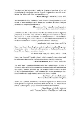 Munro and Campbell’s book is a timely, uplifting guide for educational leaders seeking to transform hurried interactions into coachable moments.