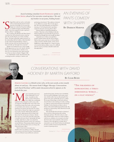 CONVERSATIONS VVITH DAVID HOCKNEY BY MARTIN GAYFORD By Liam Budd Martin Gayford is a British writer who, in his own words, writes mostly about art and jazz. His newest book ‘A Bigger Message: Conversations with David Hockney’ will be under discussion when he appears at the festival this year.